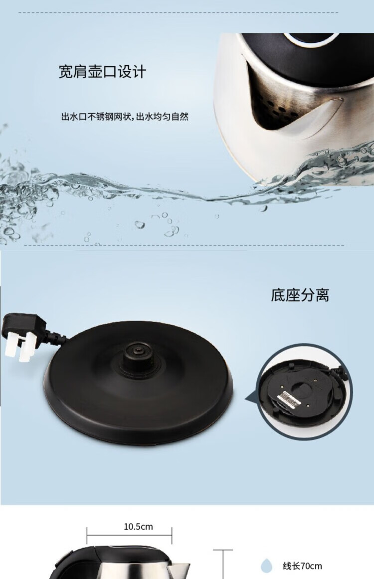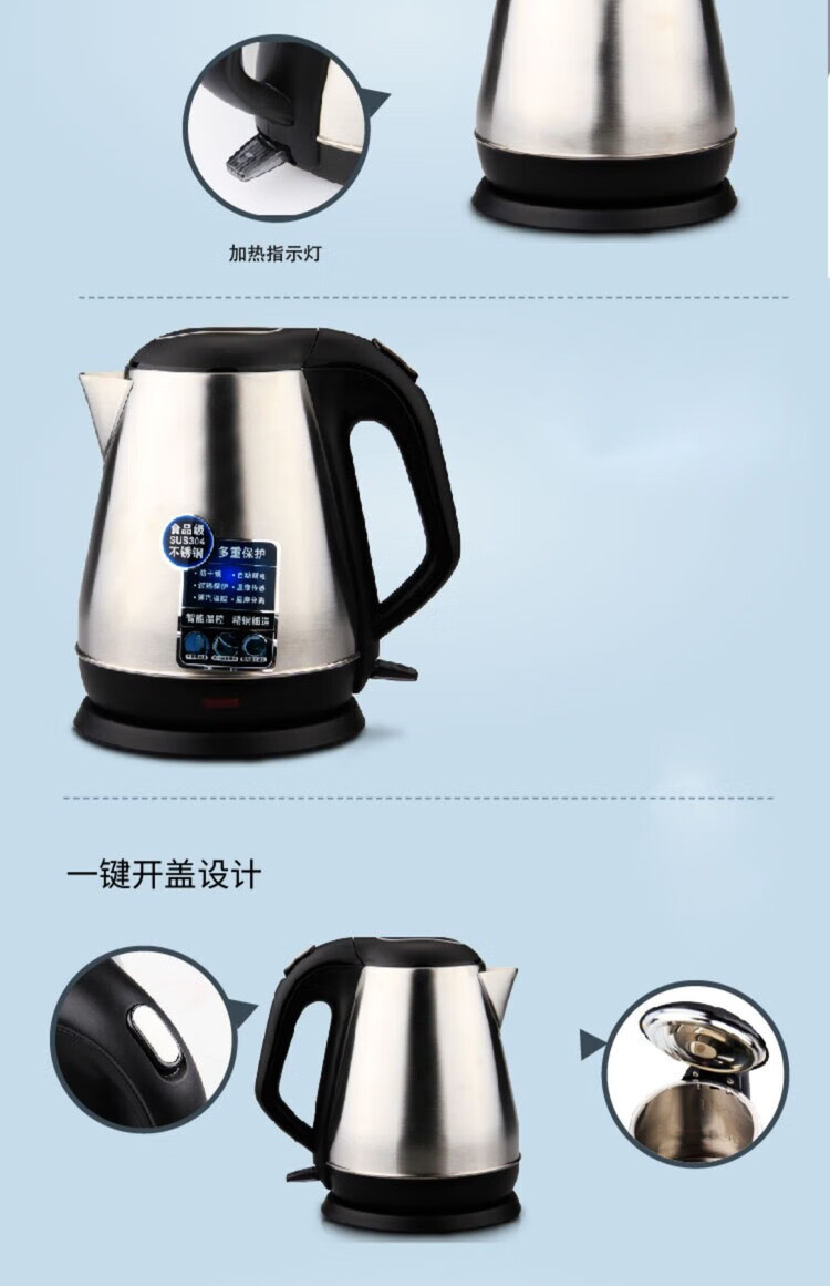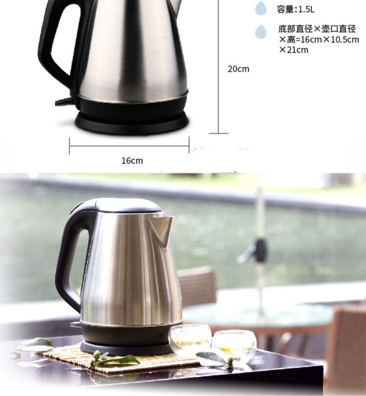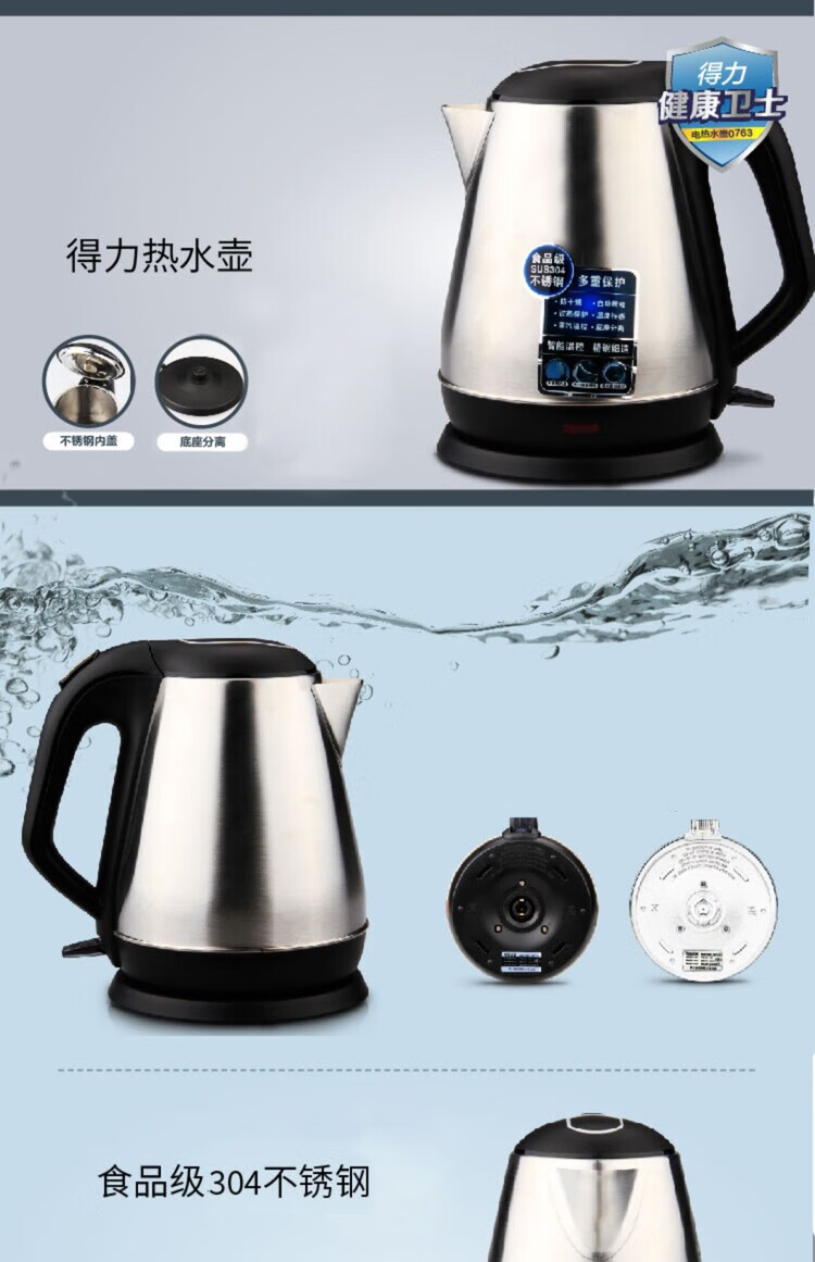 商品名稱(chēng):得力0763 電熱水壺 開(kāi)水壺單層304不銹鋼燒水壺泡茶燒水壺1.5L 銀色