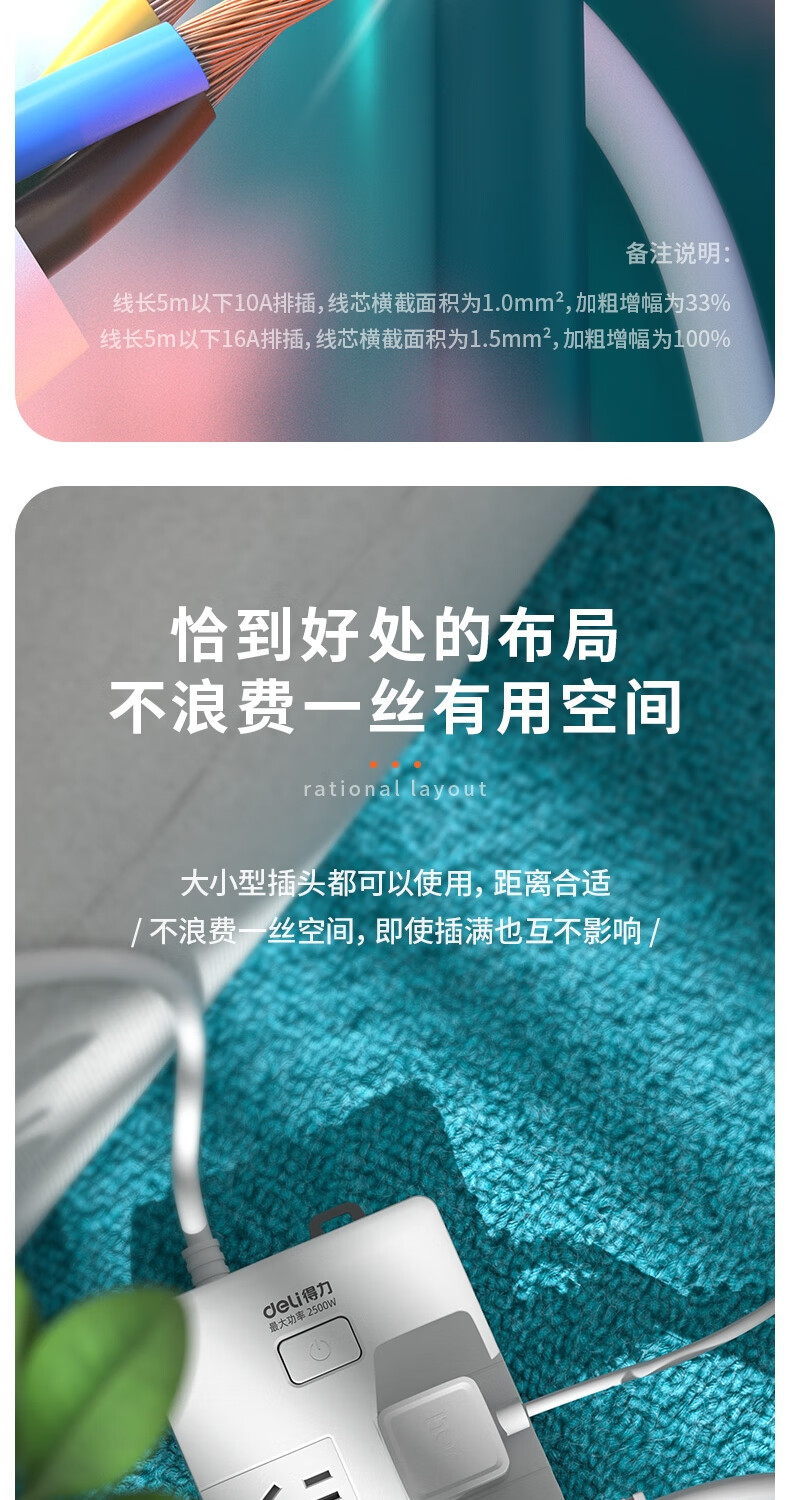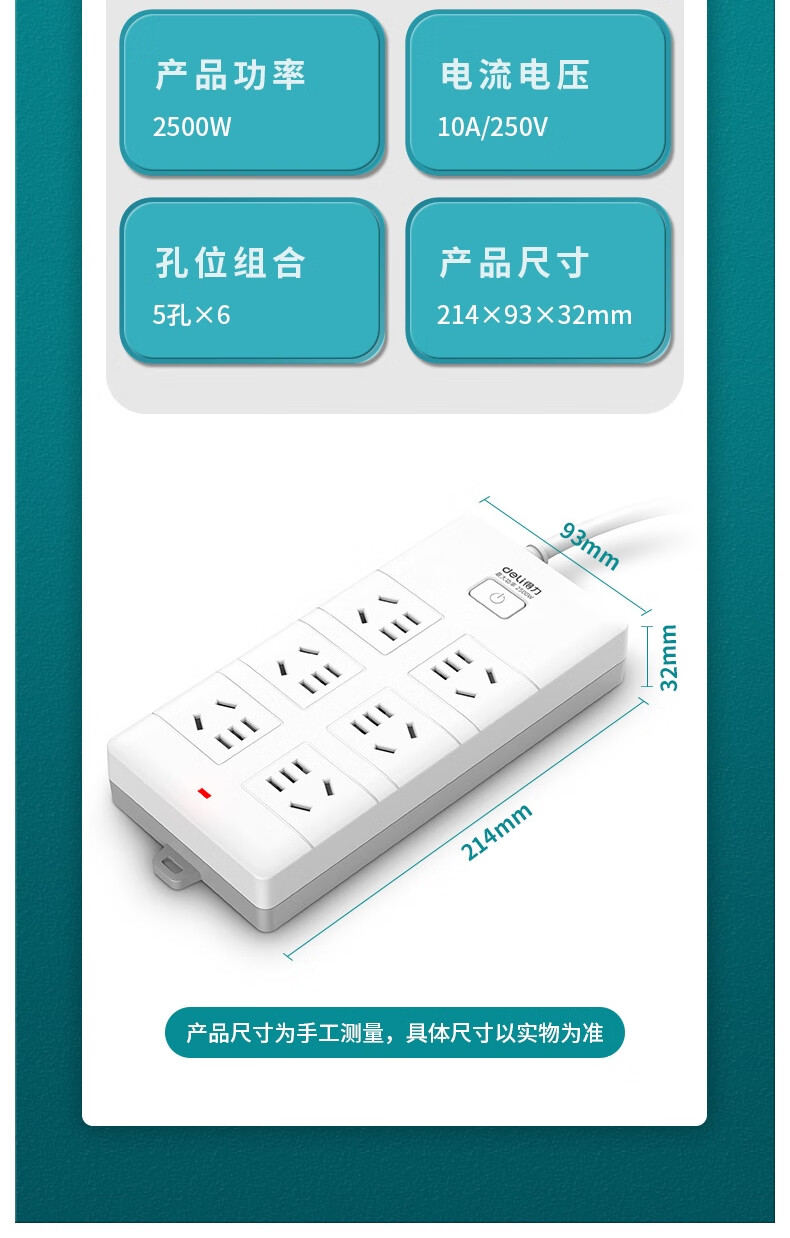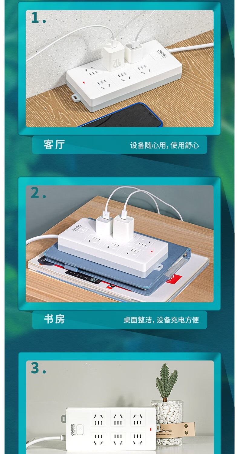 商品名稱:得力18168-03 多功能插排/插線板/拖線板/接線板/電插板/插座板 6位3米(個)