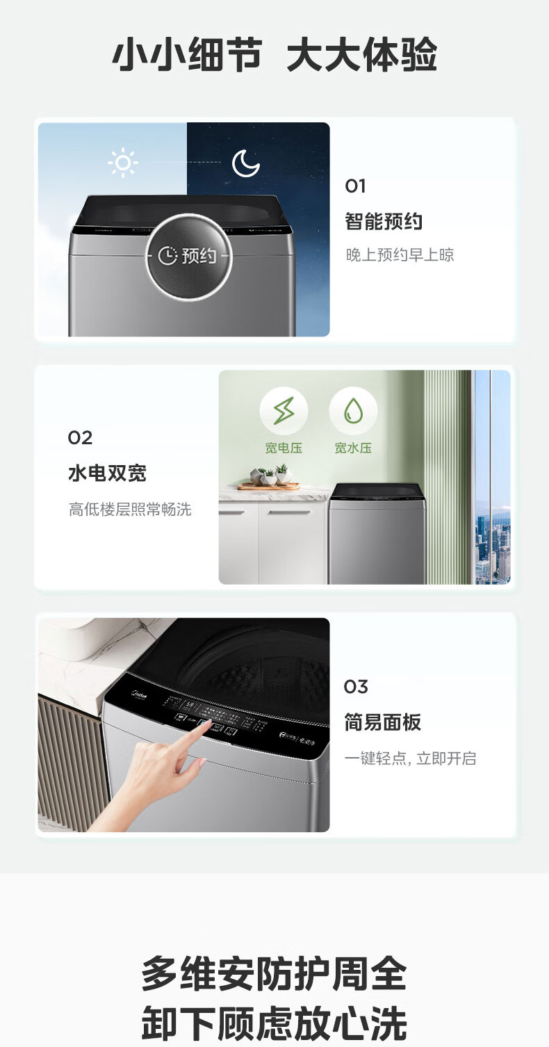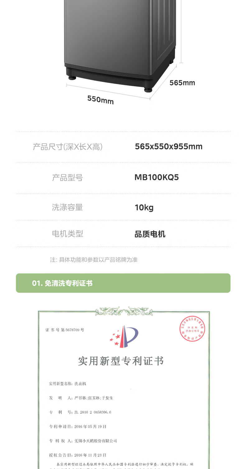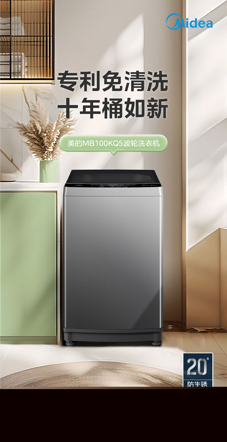 商品名稱:美的MB100KQ5 波輪洗衣機(jī)全自動(dòng) 10公斤kg大容量除螨洗甩干脫水宿舍租房可預(yù)約【隨心洗系列】