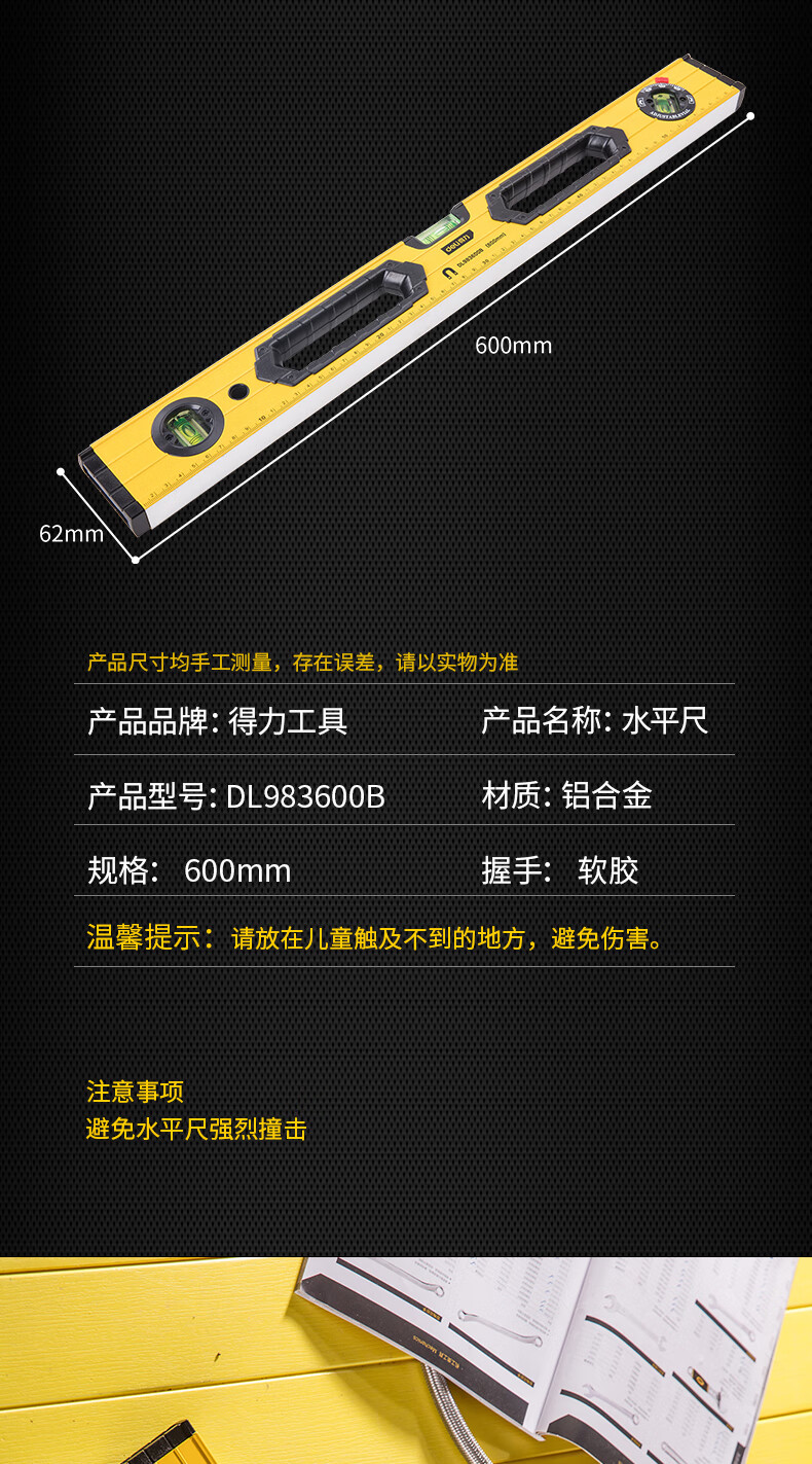 商品名稱:得力DL983600B 可調(diào)式水平尺 高強(qiáng)磁多角度精度鋁合金水平測量尺防摔平衡儀600mm
