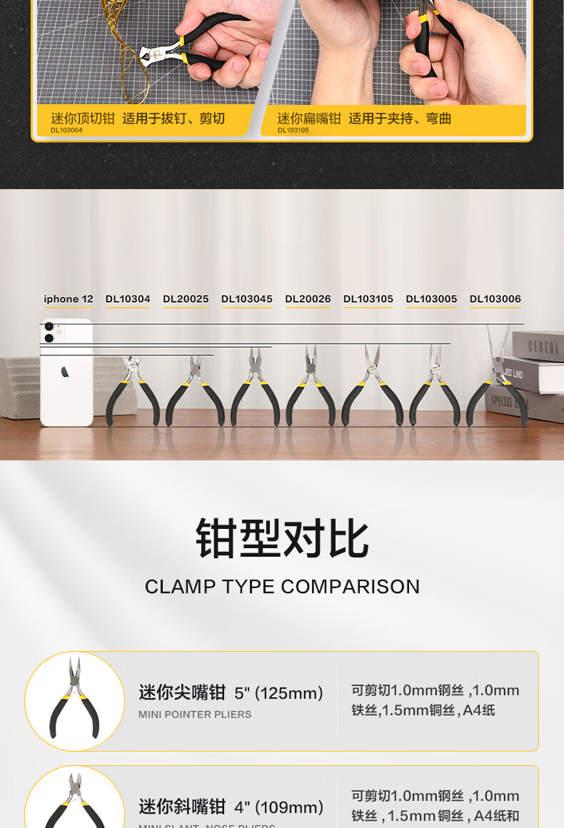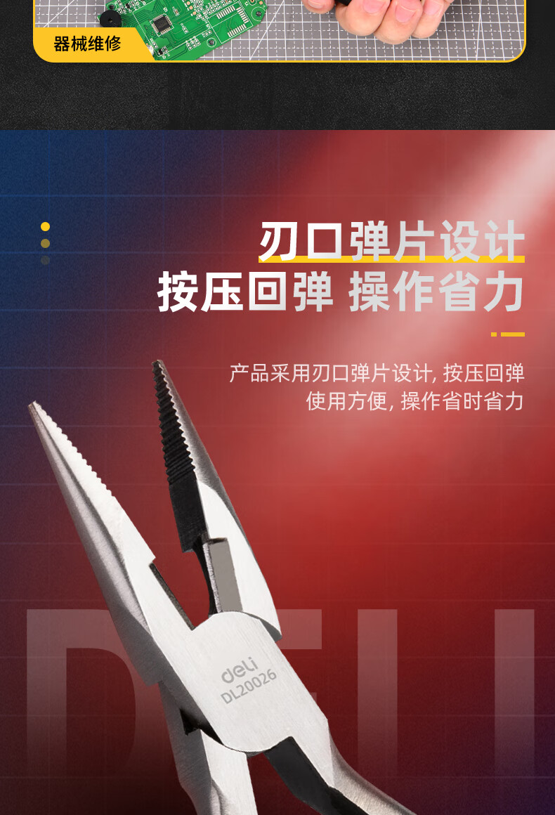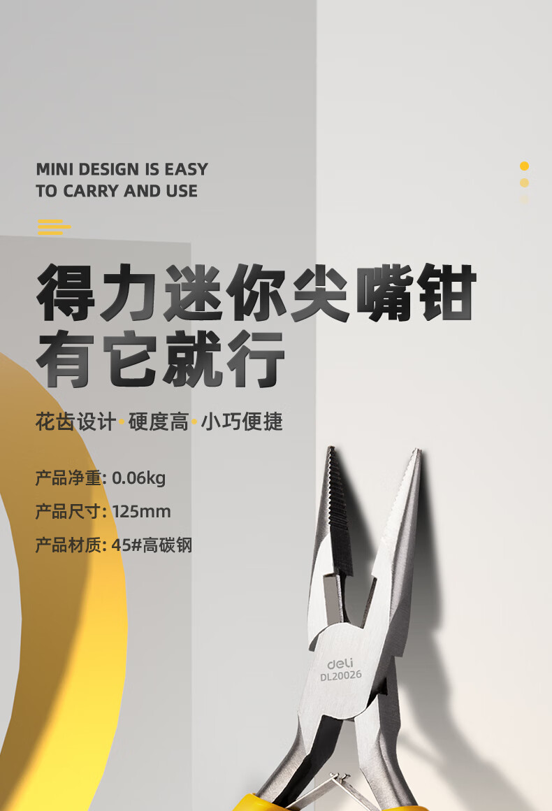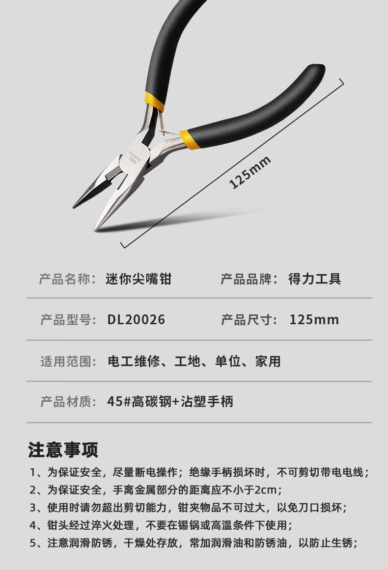 商品名稱:得力DL20026 尖嘴鉗 高碳鋼精工鍛造迷你有牙尖口鉗尖咀鉗夾持鉗5英寸