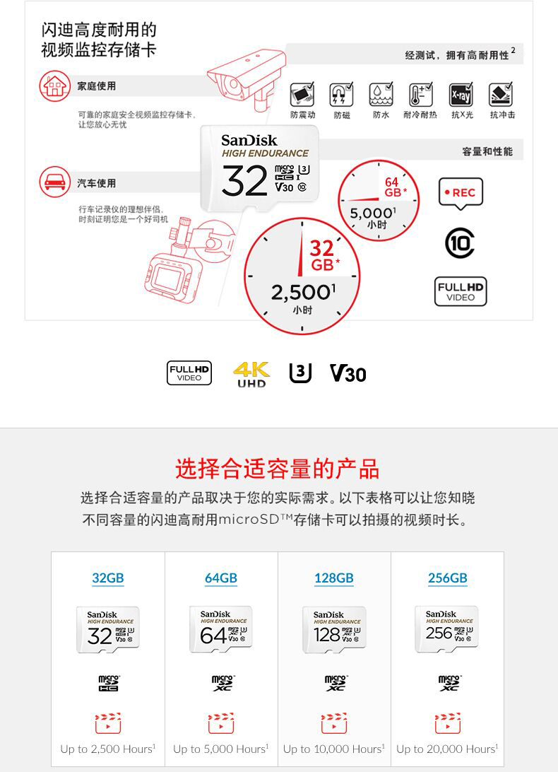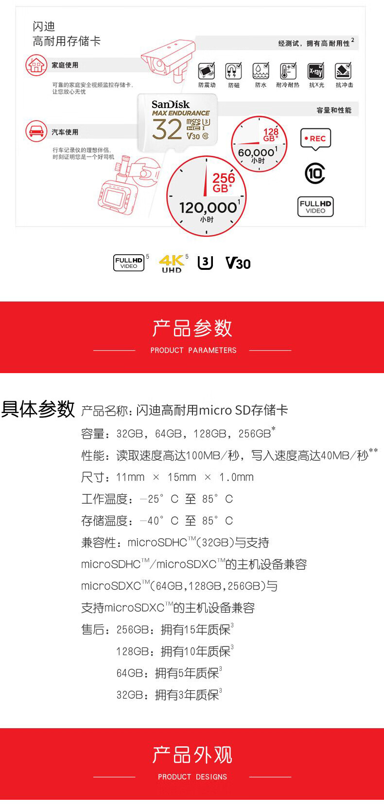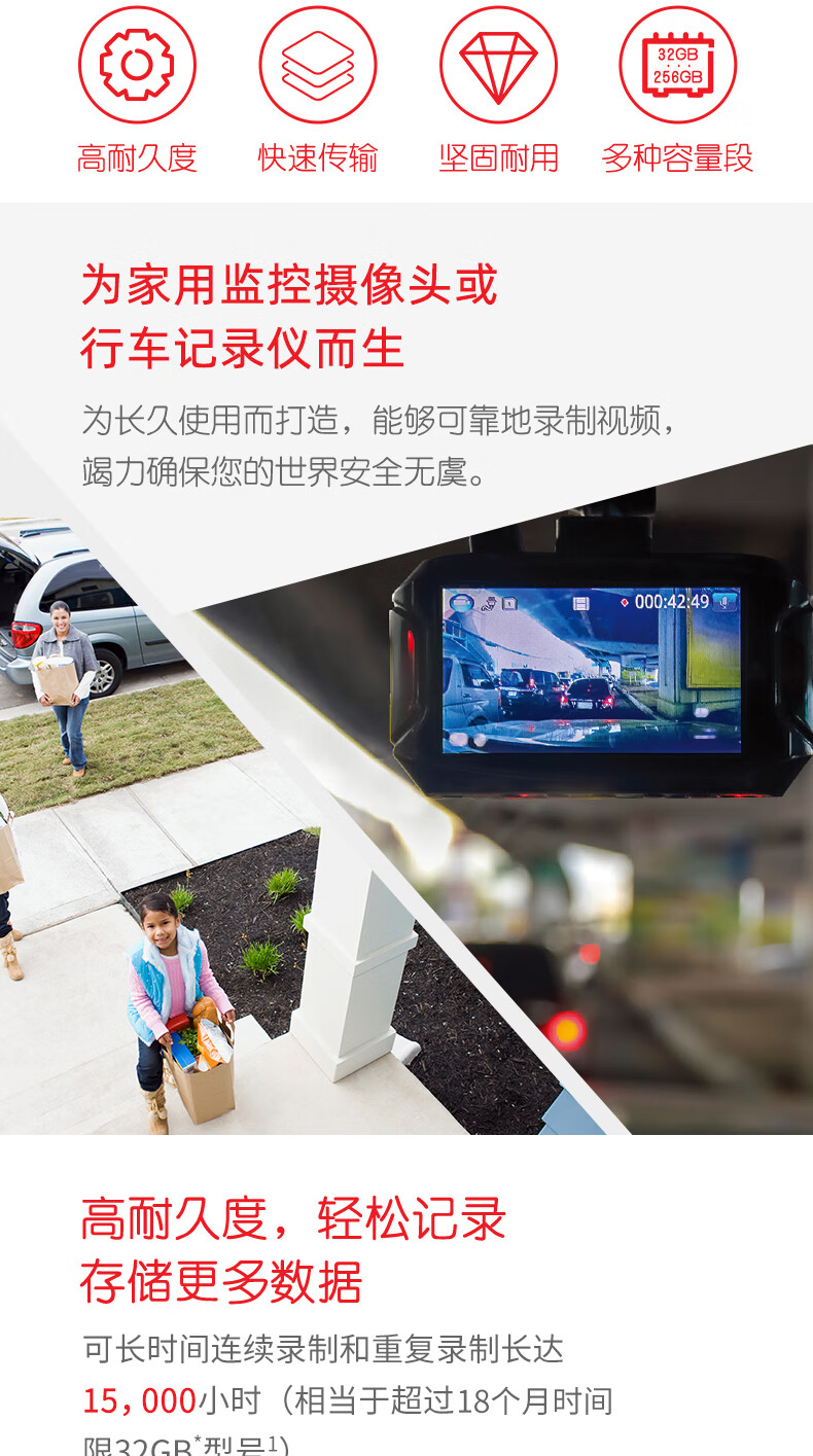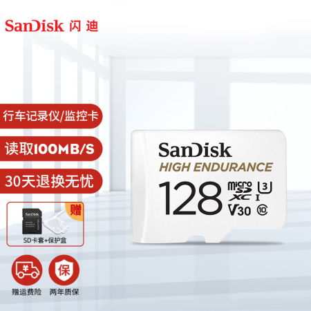 商品名稱:閃迪 128GB TF(MicroSD)存儲(chǔ)卡 行車記錄儀&安防監(jiān)控專用內(nèi)存卡 高度耐用 家庭監(jiān)控 讀速100MB/S