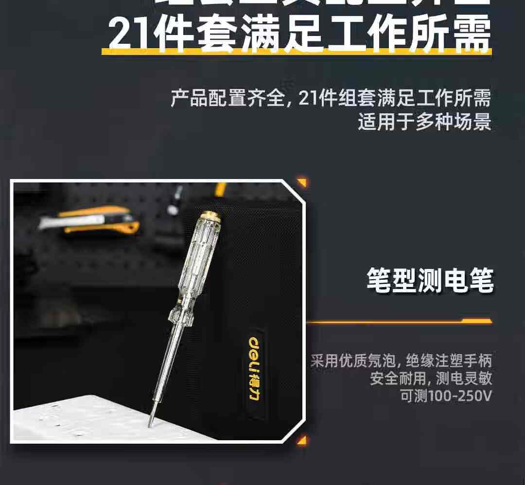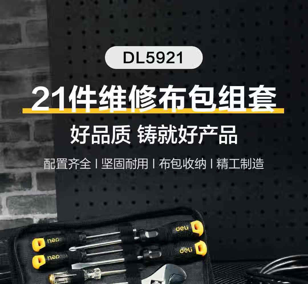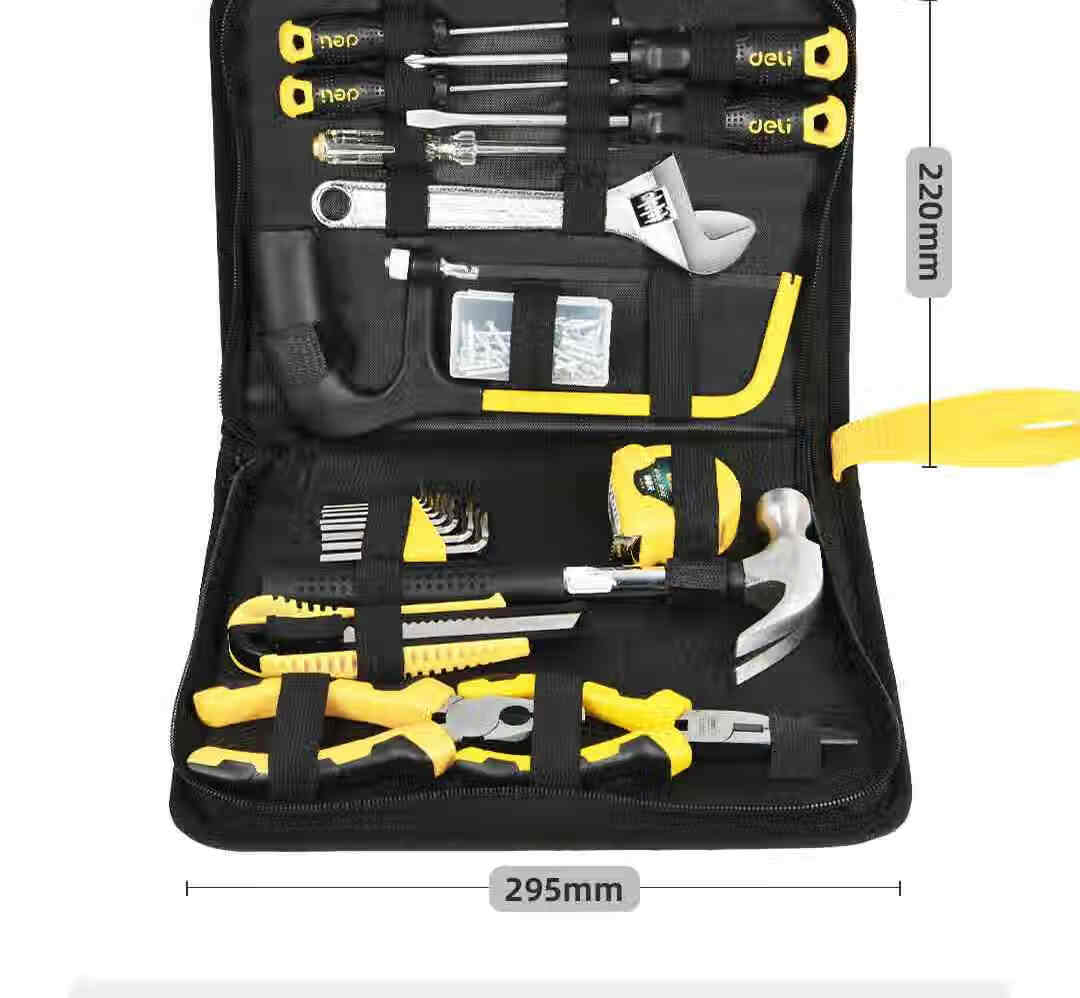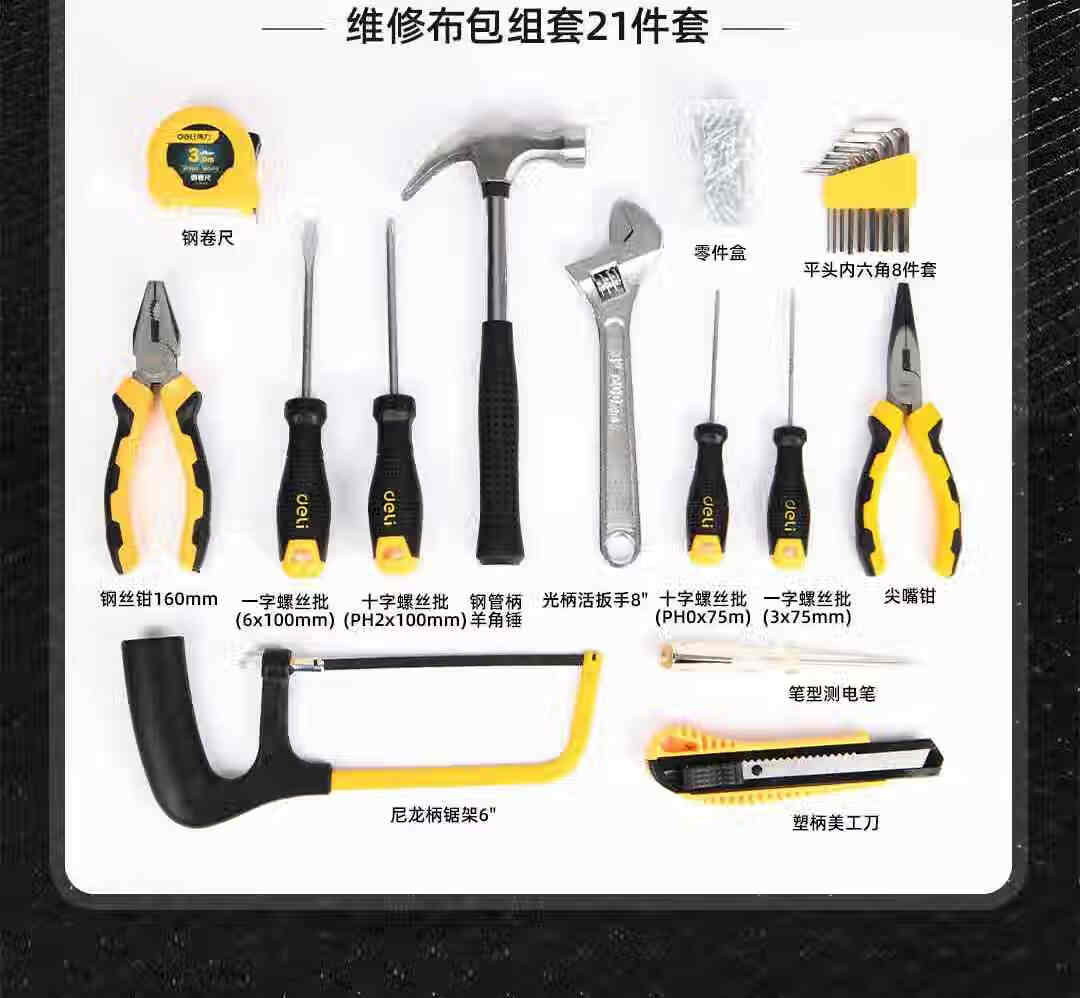 商品名稱:得力DL5921 家用工具箱套裝 布包組套電工木工維修五金手動(dòng)工具21件套