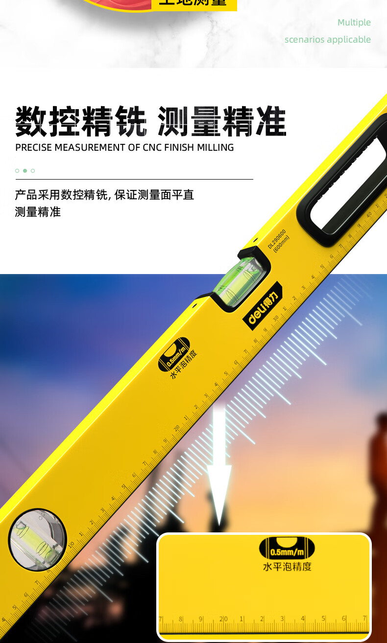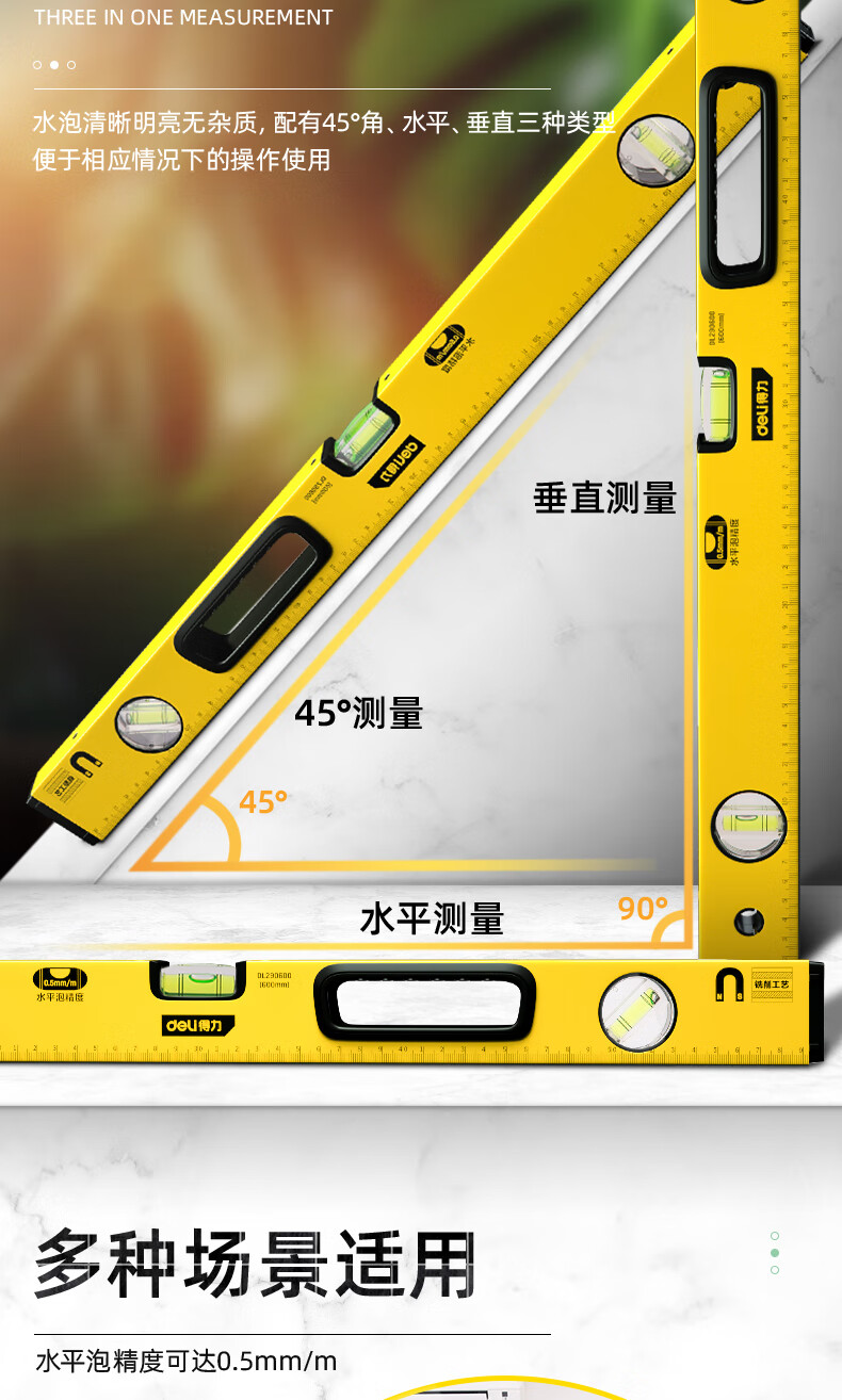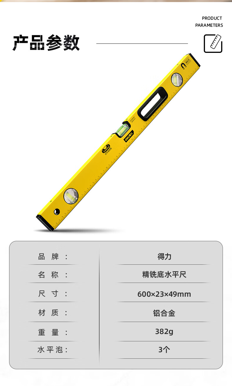 商品名稱:得力DL290600 強(qiáng)磁多角度水平尺 鋁合金水平測(cè)量尺水平儀600mm