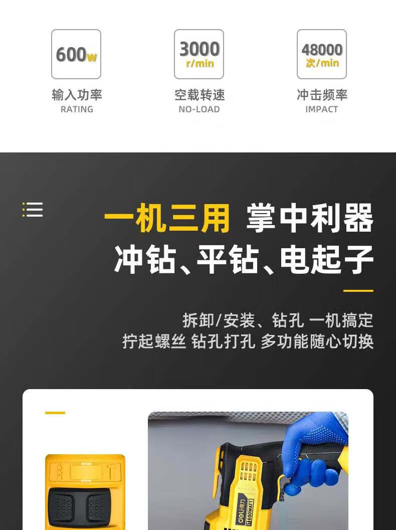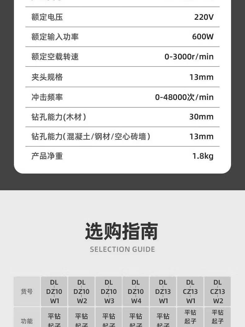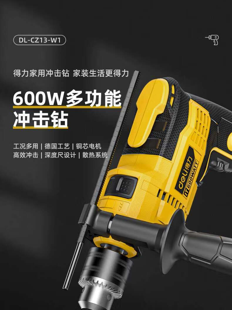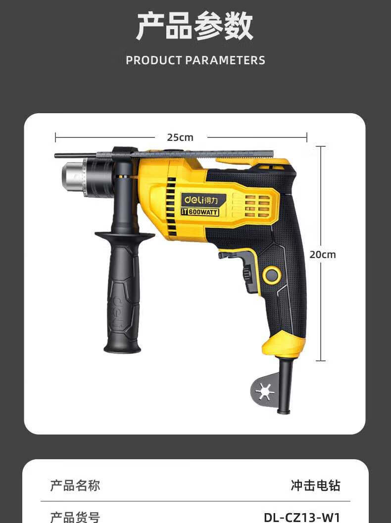 商品名稱:得力DL-CZ13-W1 沖擊電鉆 600W家用輕型手電鉆電動螺絲刀交流電鉆