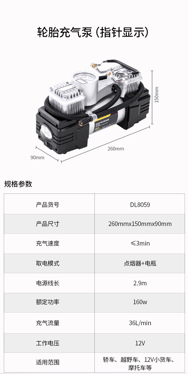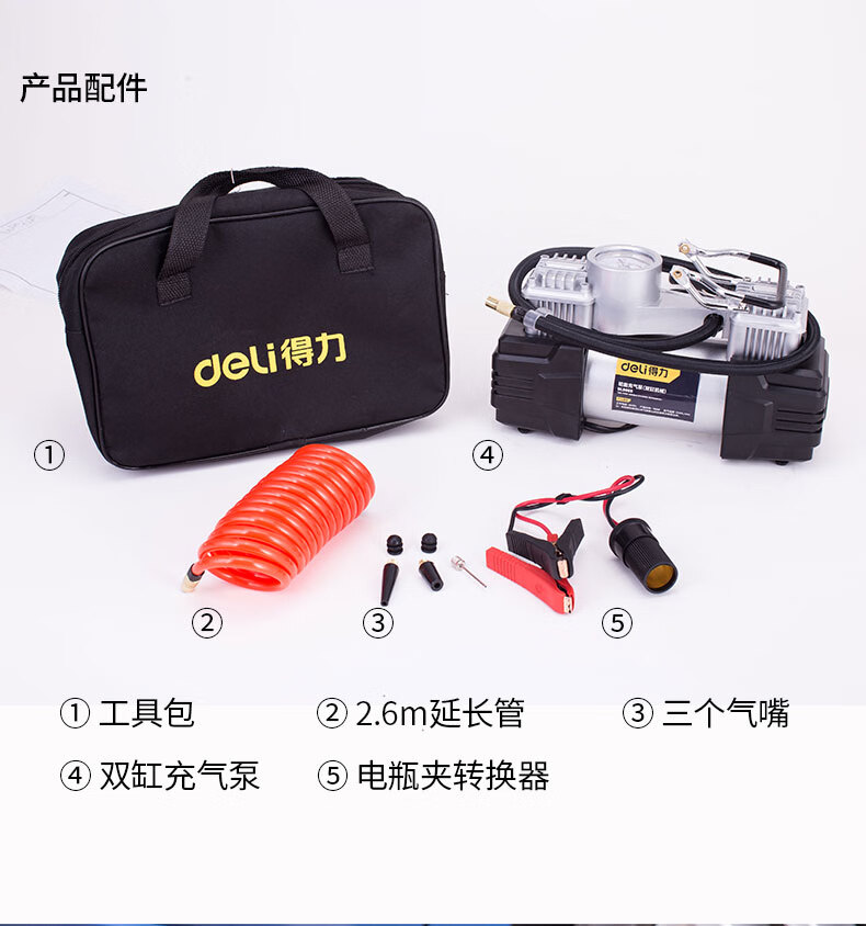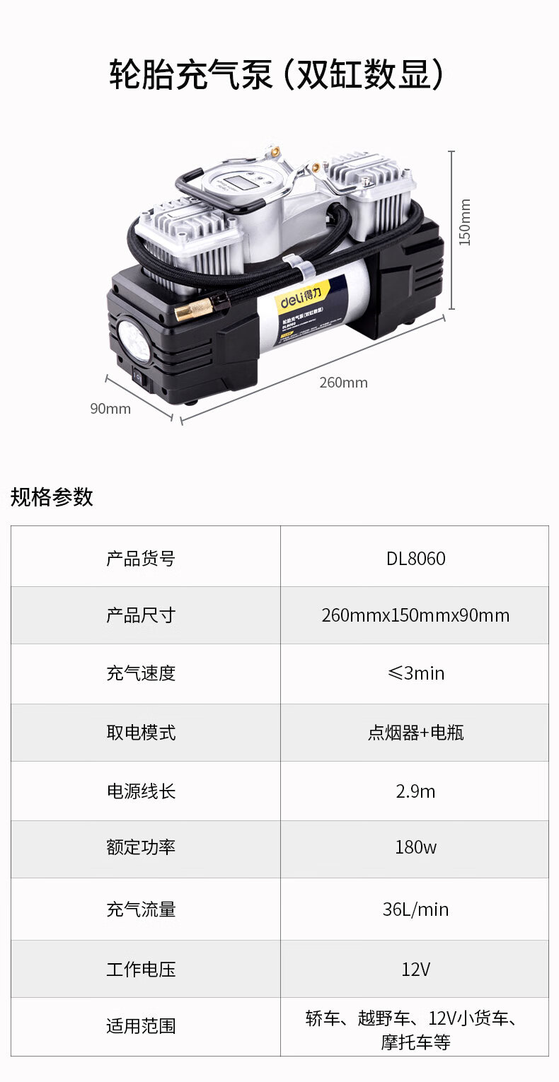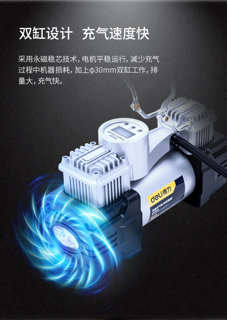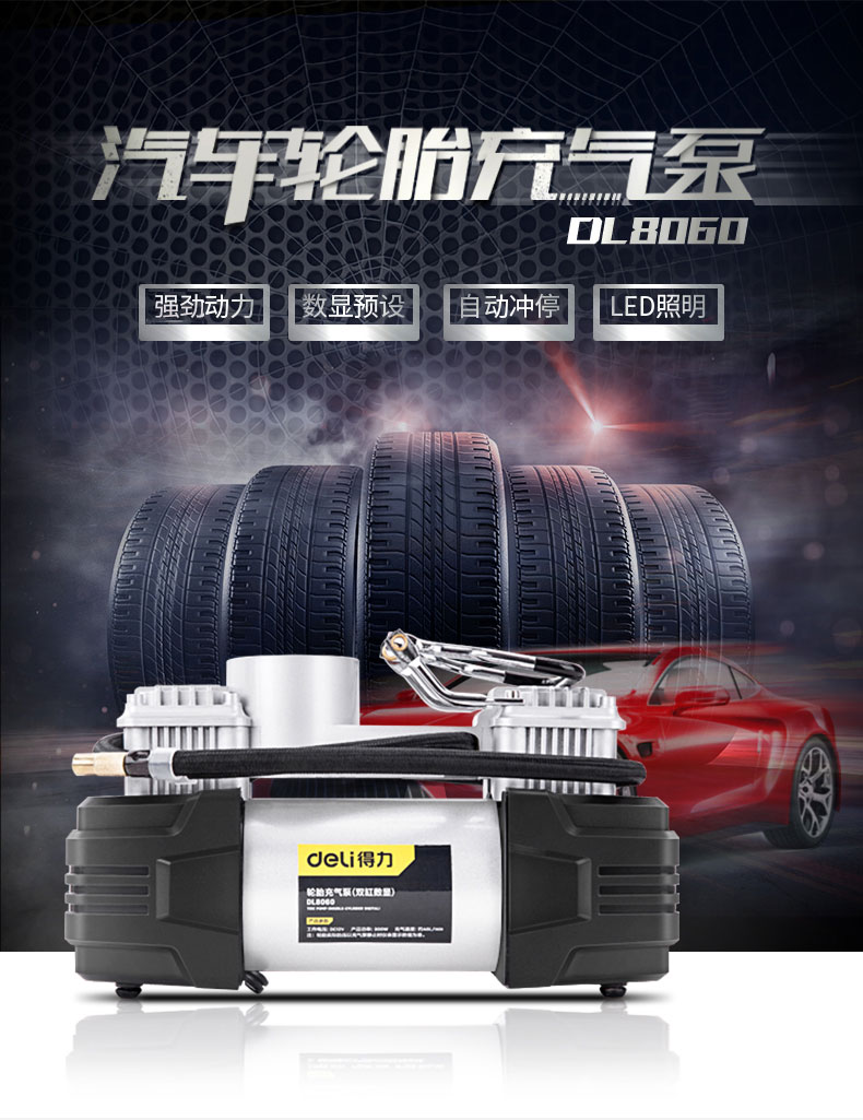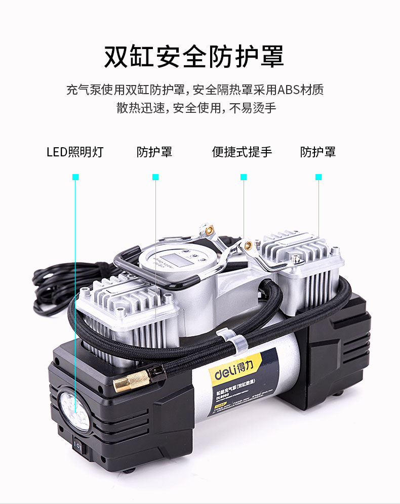 商品名稱:得力DL8060 車載充氣泵 雙缸高壓便攜式轎車輪胎家車用打氣泵筒電動汽車 雙30缸數(shù)顯預(yù)設(shè)胎壓充氣泵