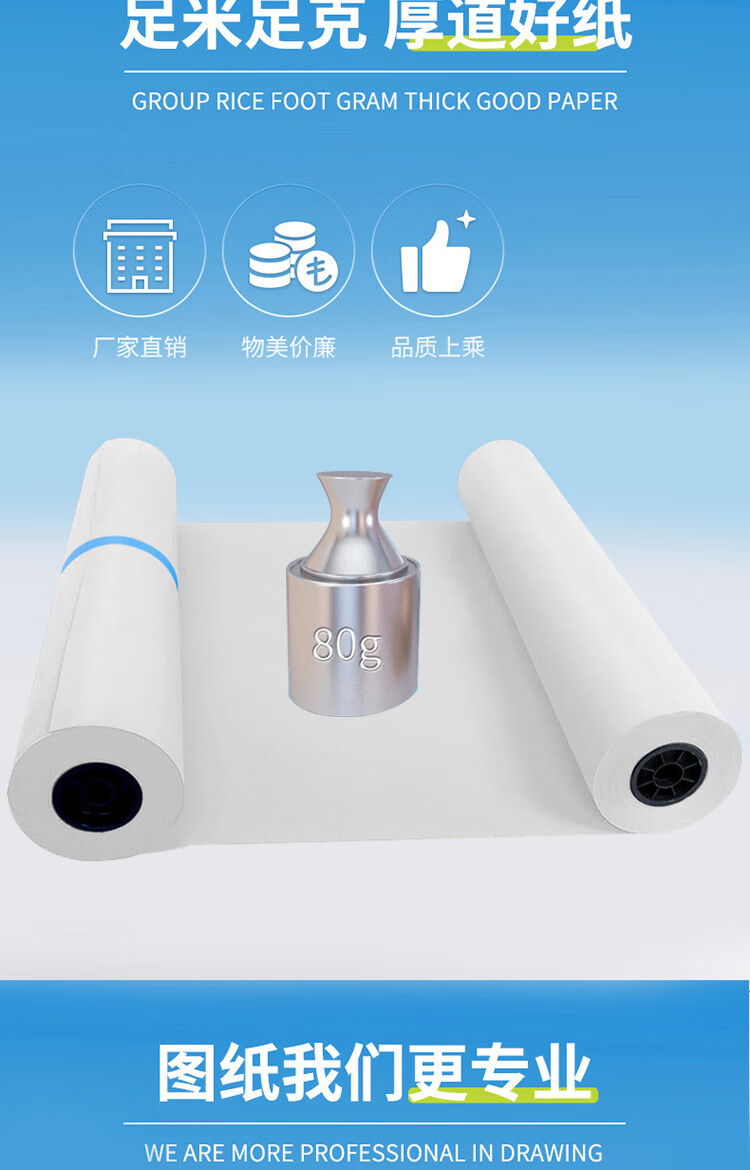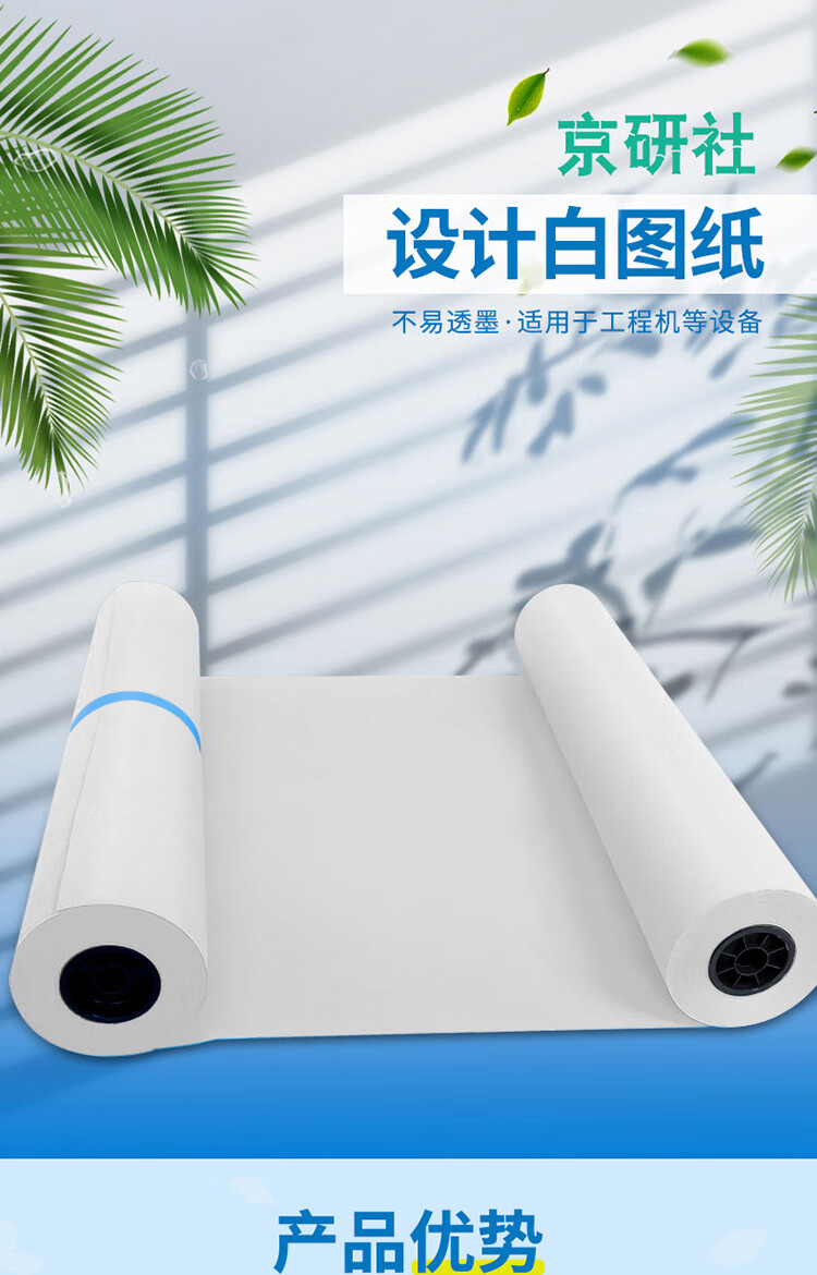 商品名稱:京研社 白色工程繪圖紙草稿白圖紙 3寸芯白圖紙A1寬620mm*150米-1卷裝