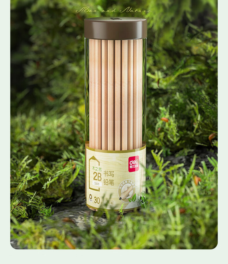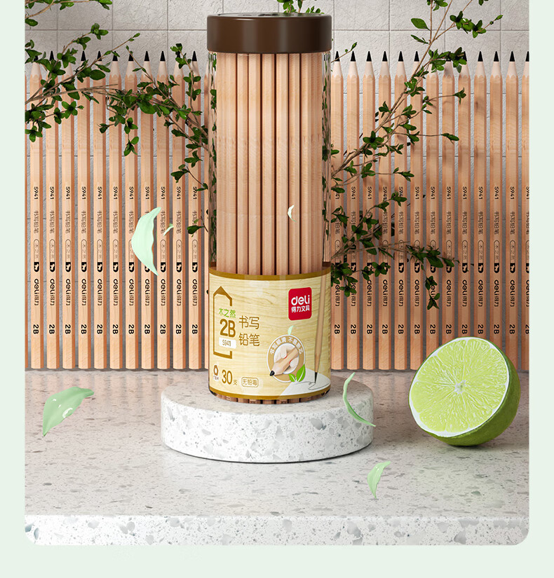 商品名稱(chēng):得力S941 鉛筆 木之然系列2B六角筆桿書(shū)寫(xiě)繪畫(huà)素描鉛筆 30支/桶