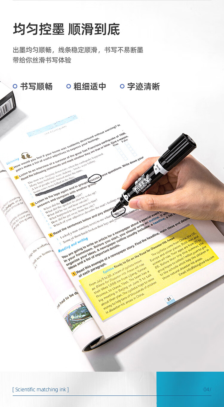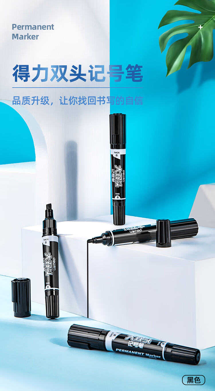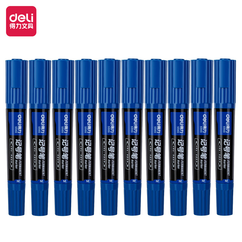 商品名稱(chēng):得力S555 大雙頭粗頭記號(hào)筆 多用物流辦公文具教學(xué)會(huì)議筆馬克筆 10支/盒