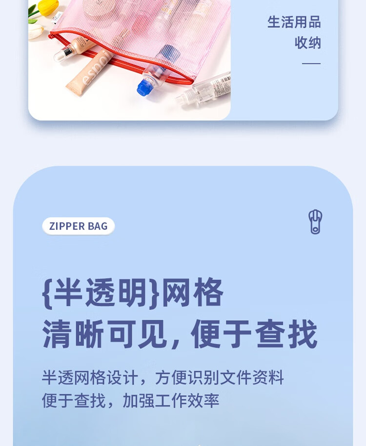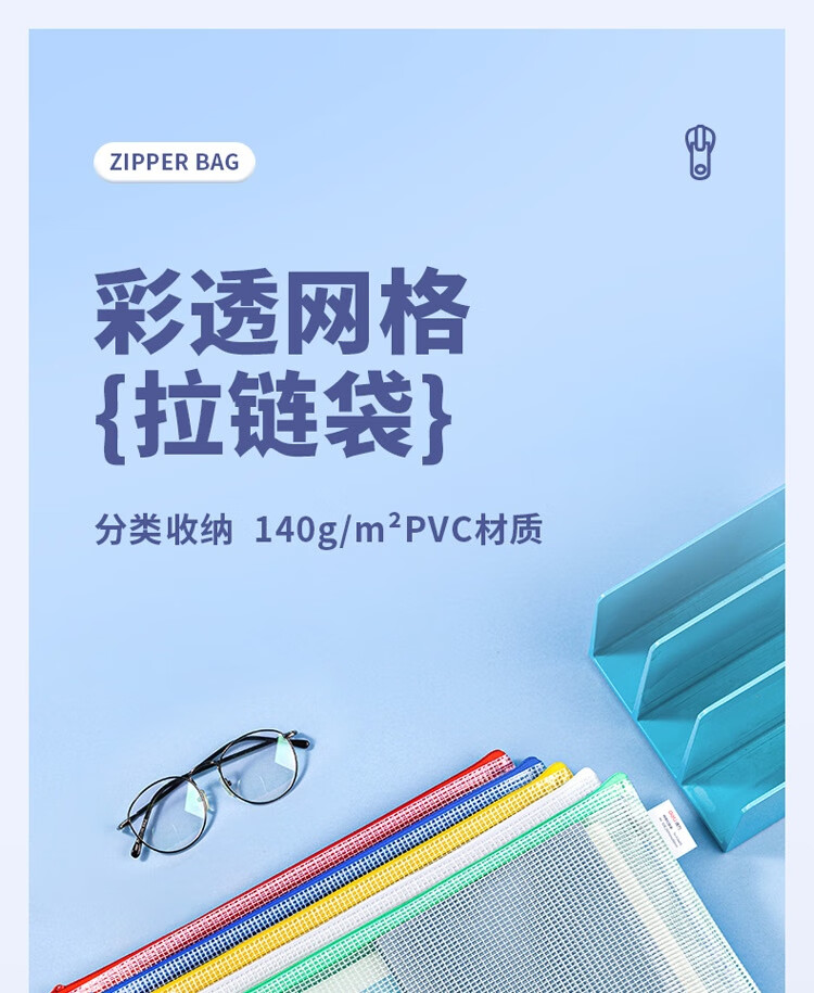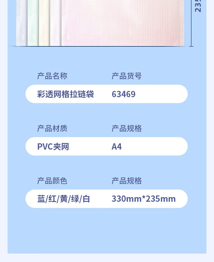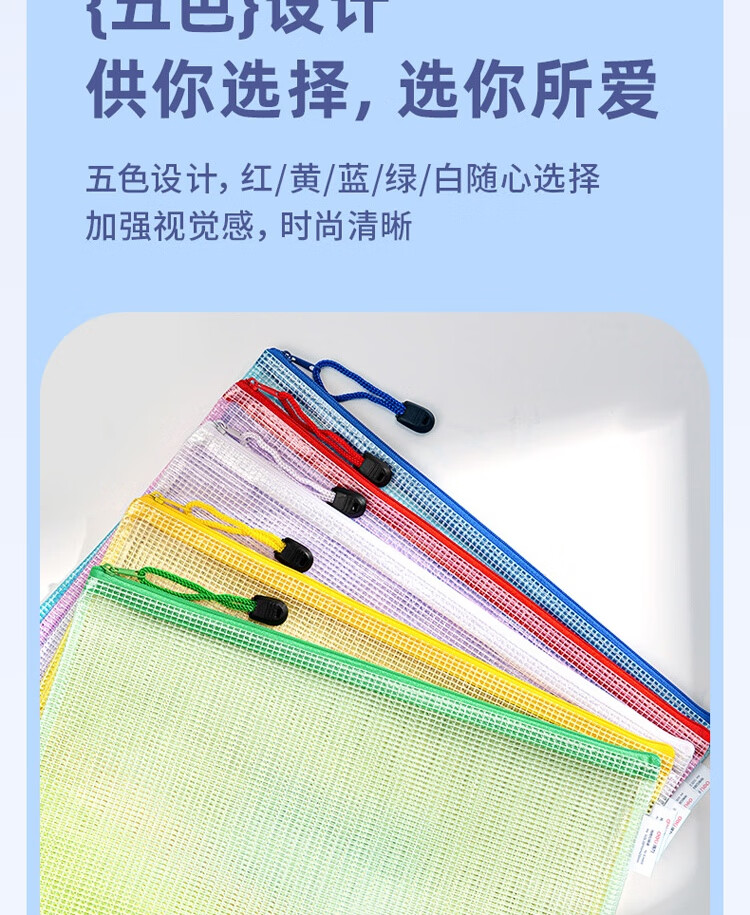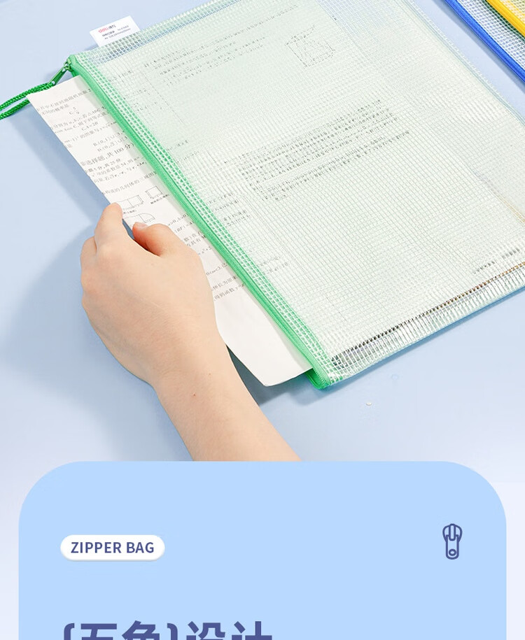 商品名稱:得力63469 網(wǎng)格拉鏈袋 A4透明資料分類袋 科目分類袋試卷文具袋 顏色隨機(jī) 單個(gè)裝