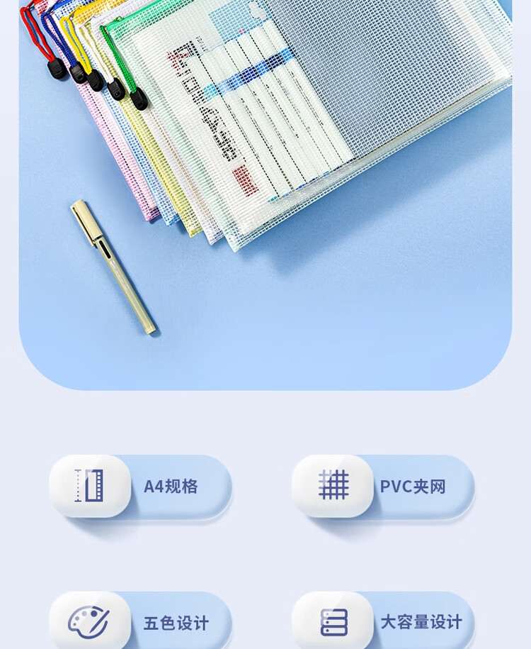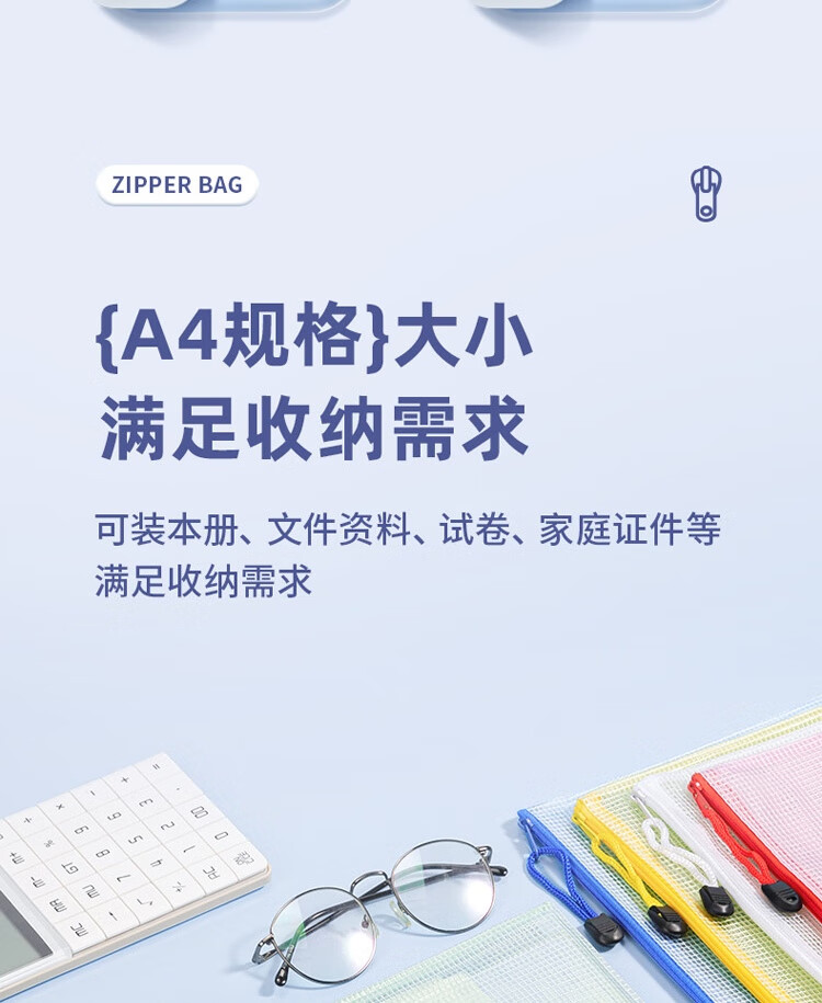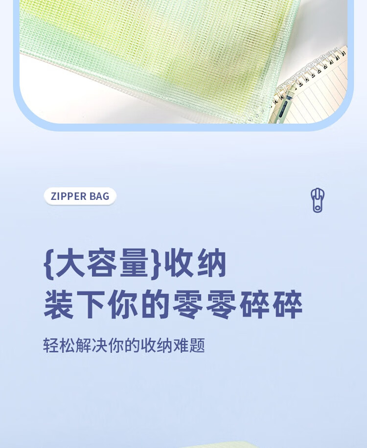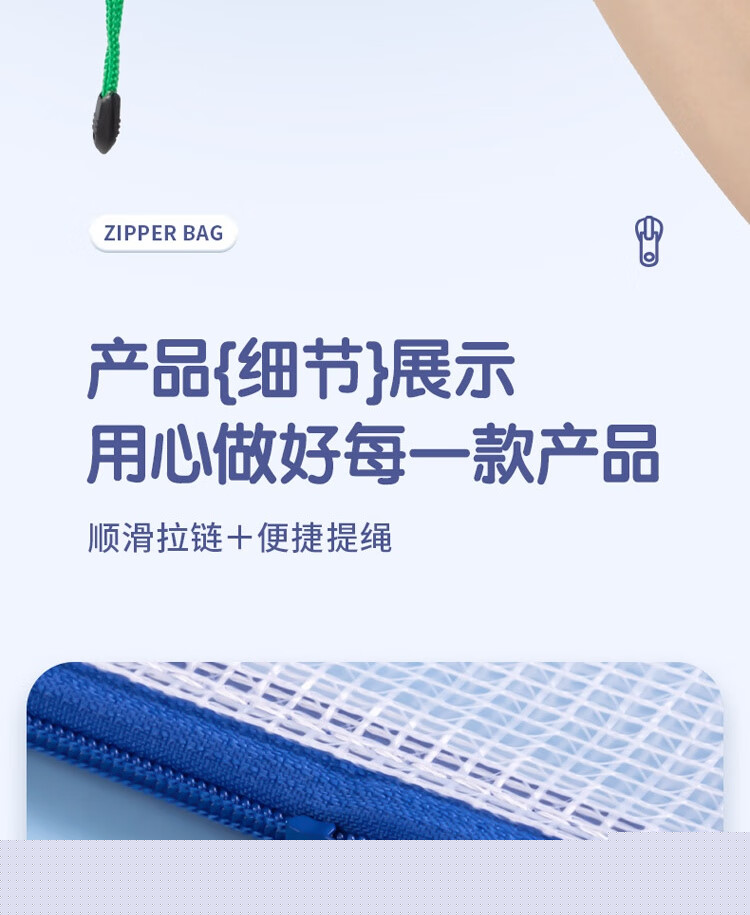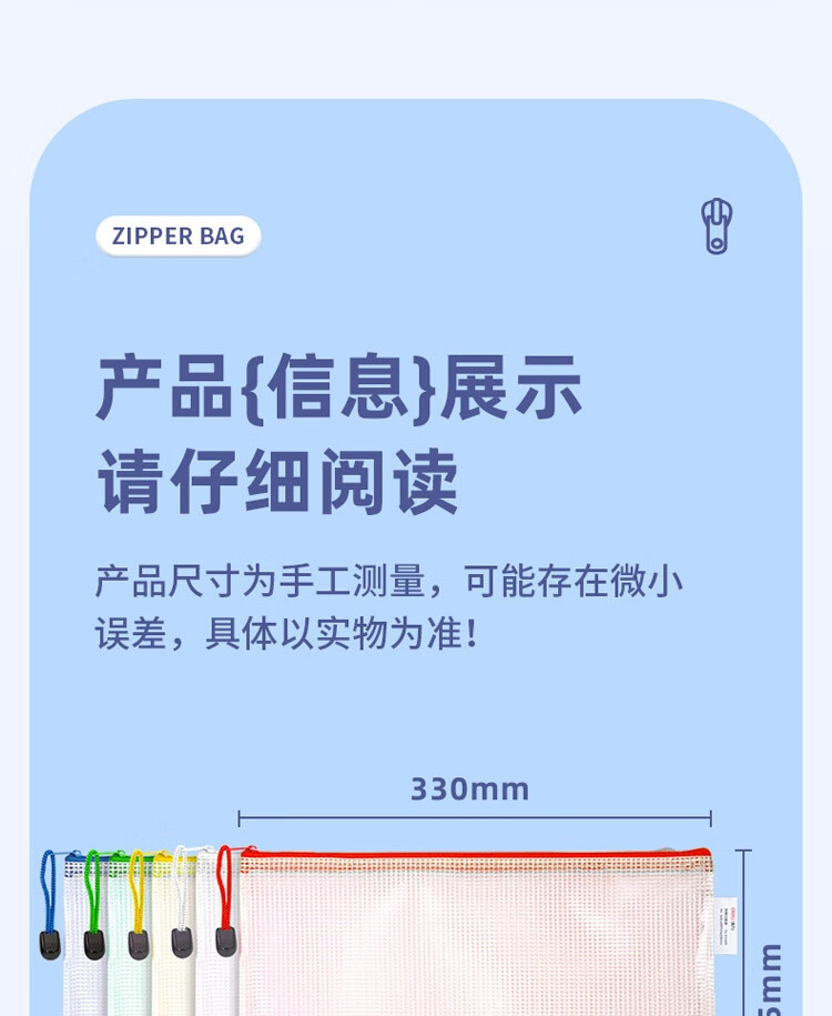 商品名稱:得力63469 網(wǎng)格拉鏈袋 A4透明資料分類袋 科目分類袋試卷文具袋 顏色隨機(jī) 單個(gè)裝