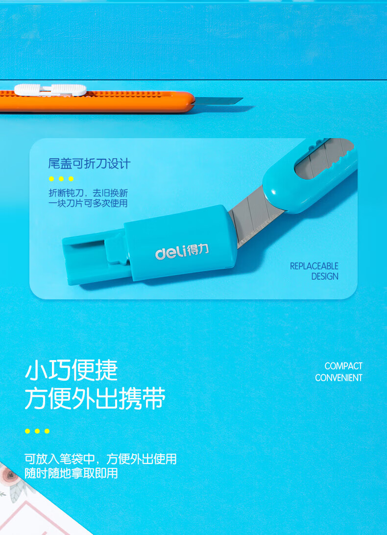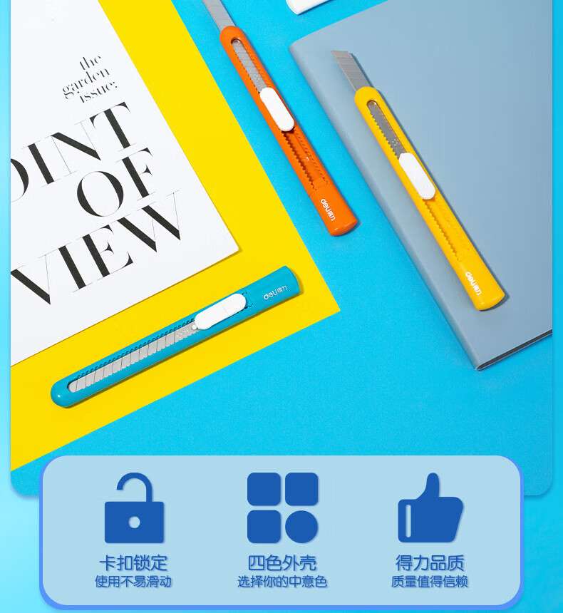 商品名稱:得力2025 小號美工刀 手工課裁剪刀 切紙刀 顏色隨機 單把裝