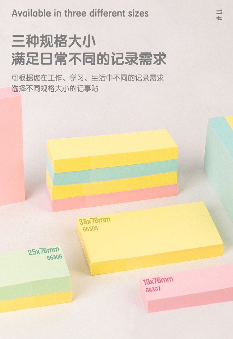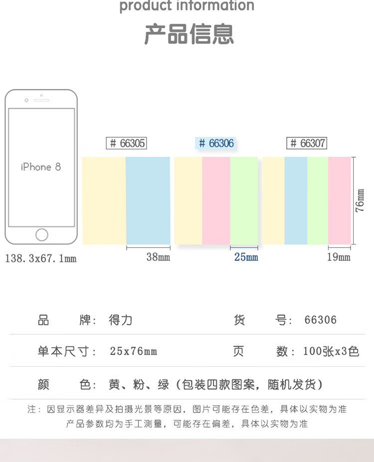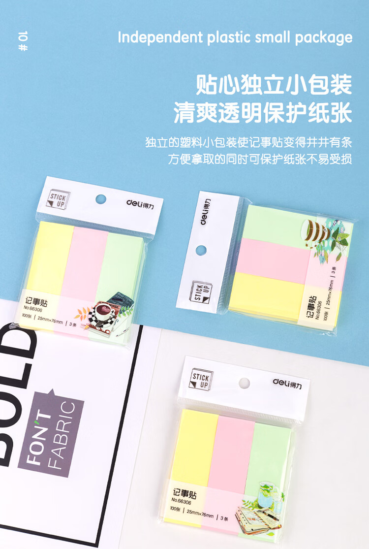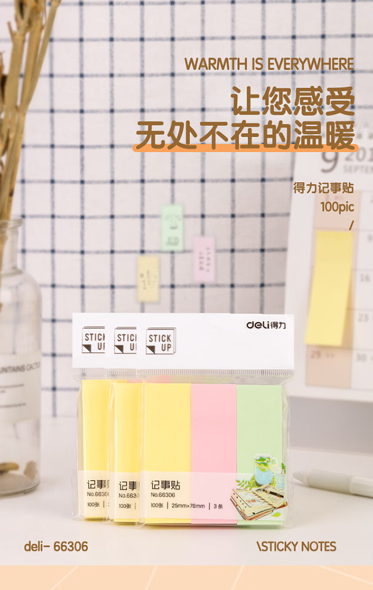 商品名稱(chēng):得力66306 便利貼 3色分條便簽紙 76*25mm記事貼 300張/包