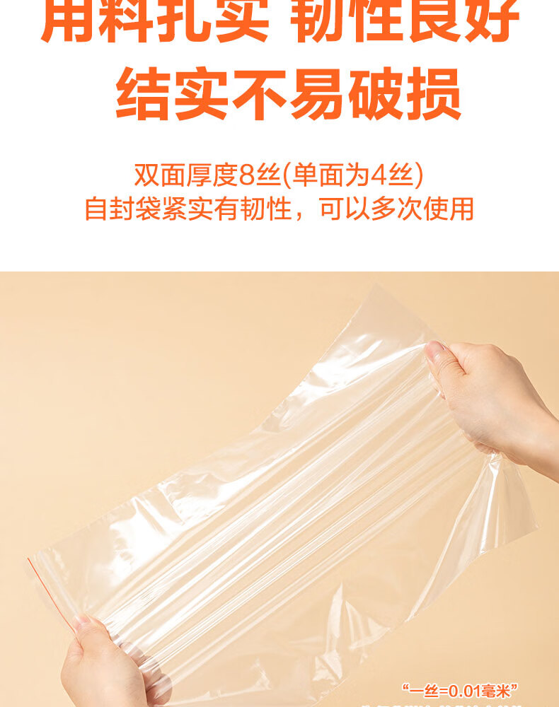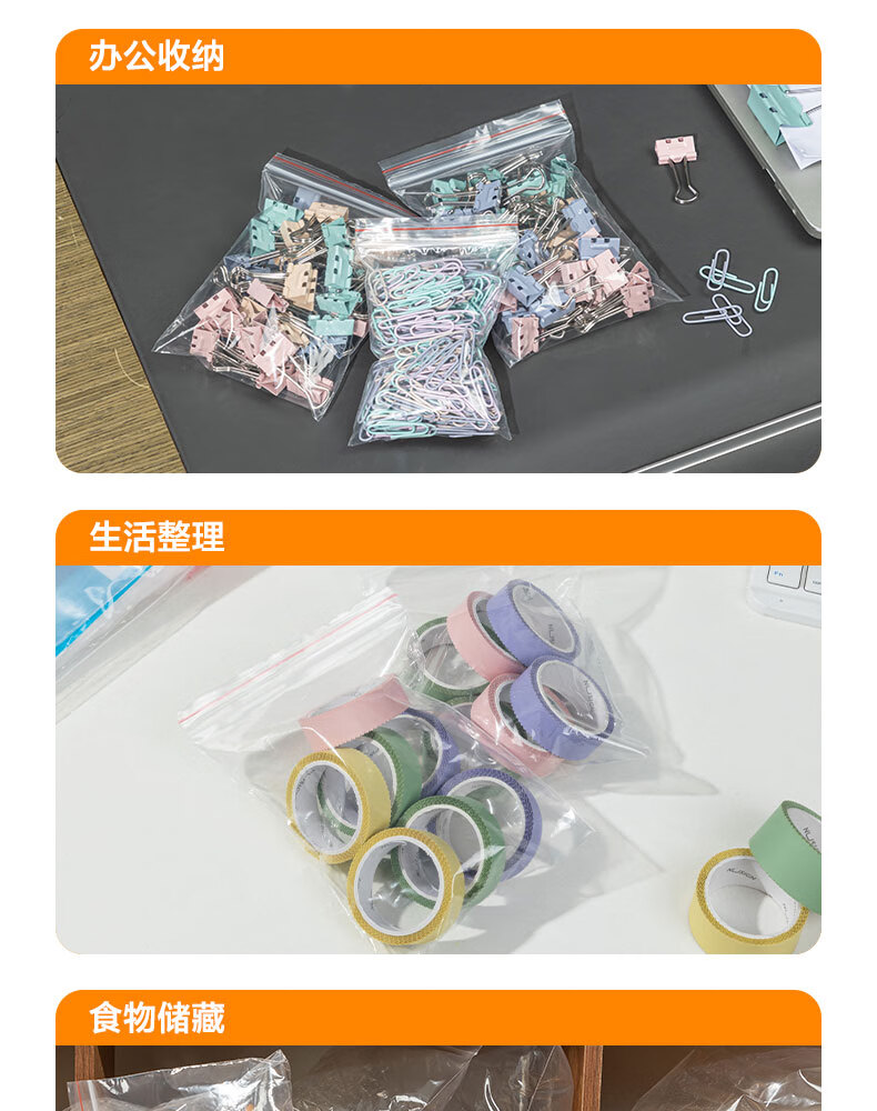 商品名稱:得力3027 食品密封袋 8號23*17cm 防水防塵保鮮收納PE透明 100只/包