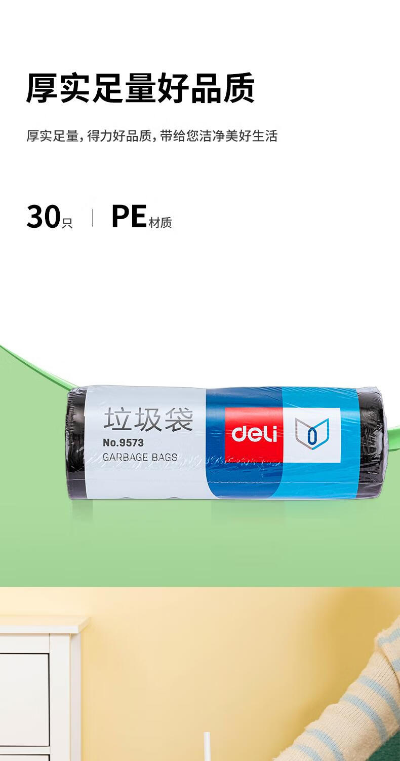 商品名稱:得力9573 垃圾袋 家用辦公加厚塑料袋垃圾袋 30只/卷