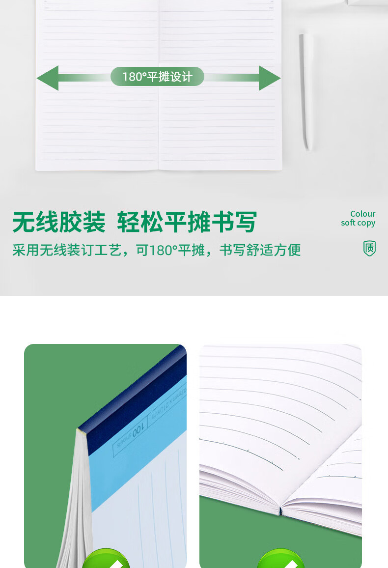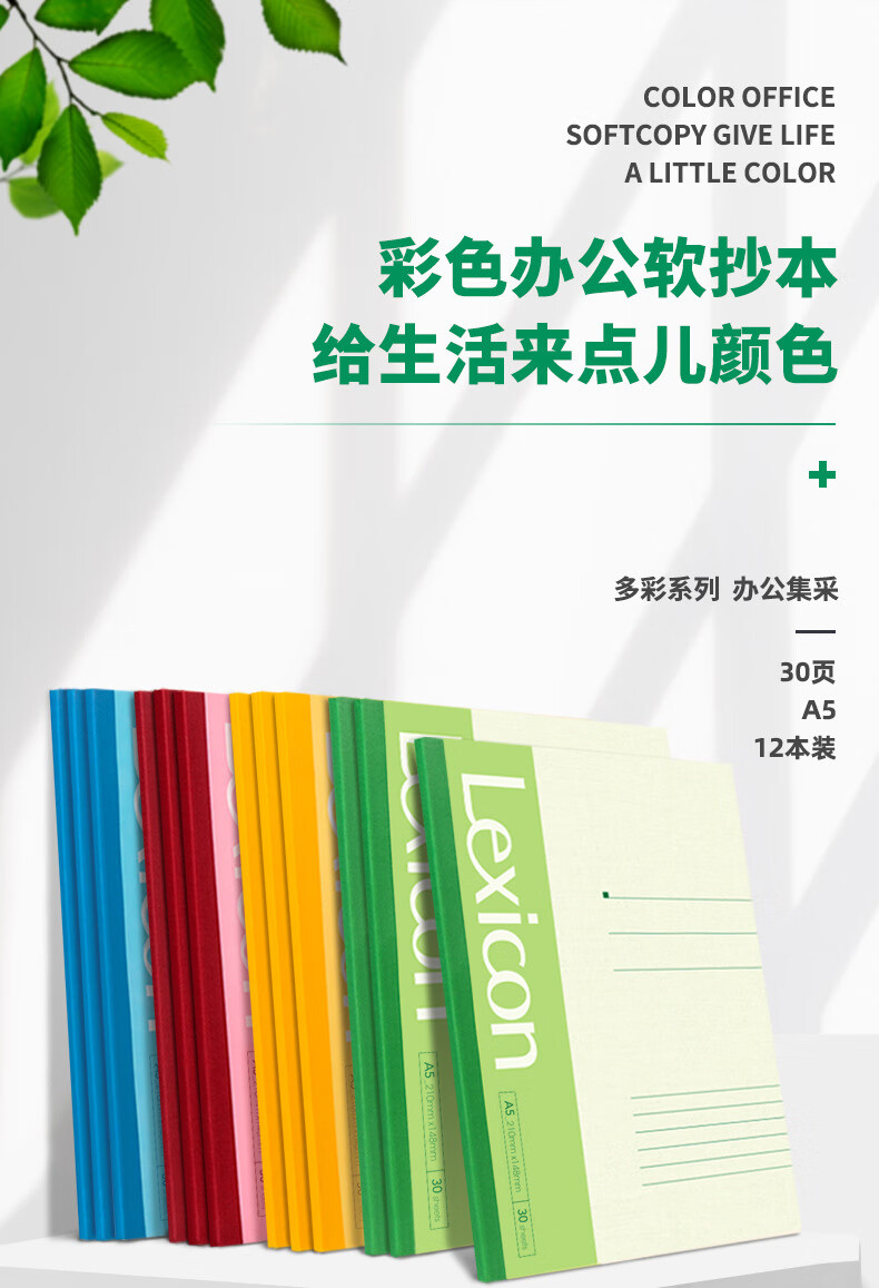 商品名稱:得力7650 軟抄本 A5/30張無(wú)線裝訂記事本工作筆記本子 12本/包