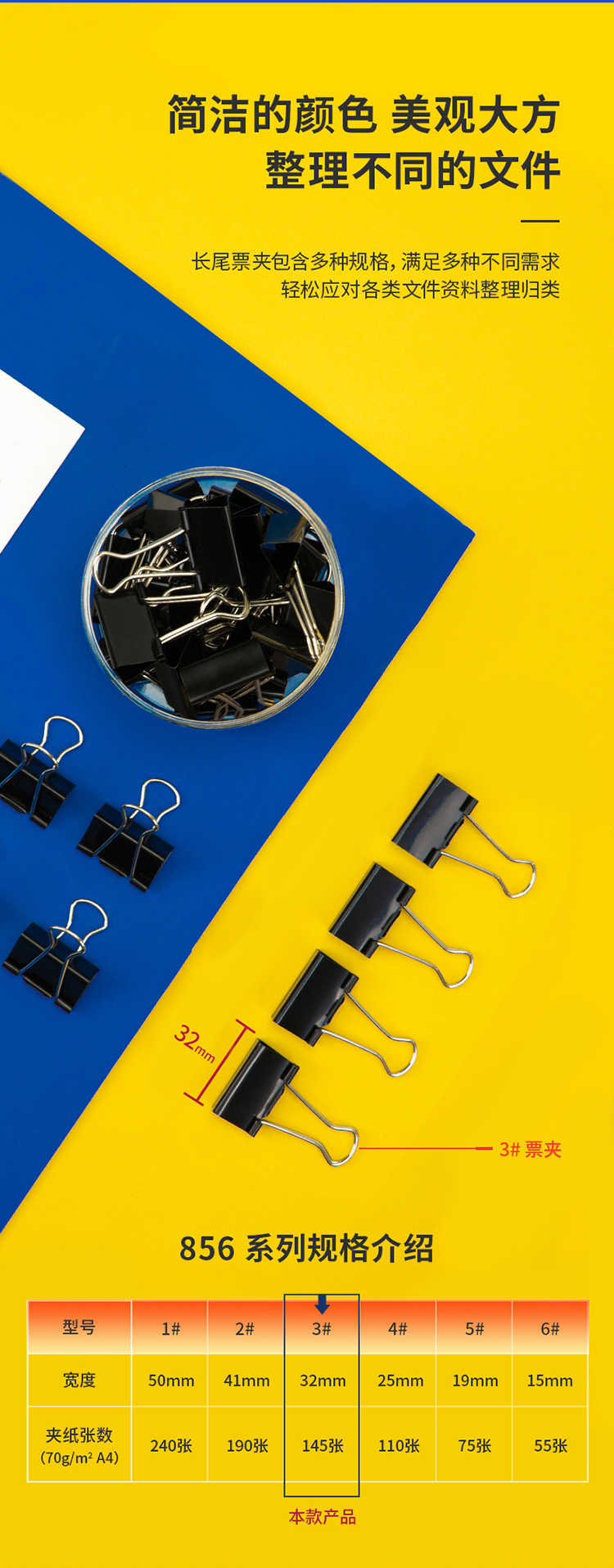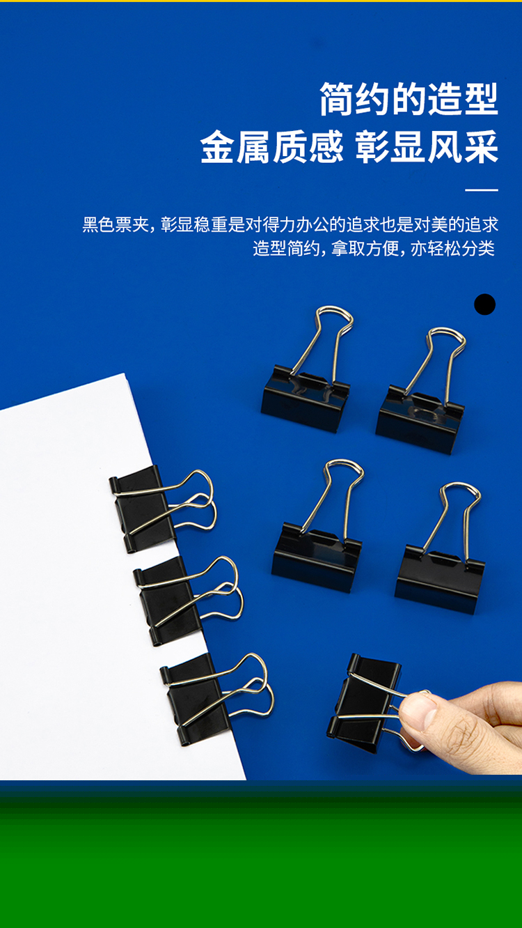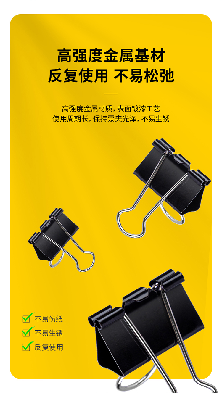 商品名稱:得力8563 黑色長(zhǎng)尾夾 32mm中號(hào)金屬燕尾夾票據(jù)文件夾子 24只/筒