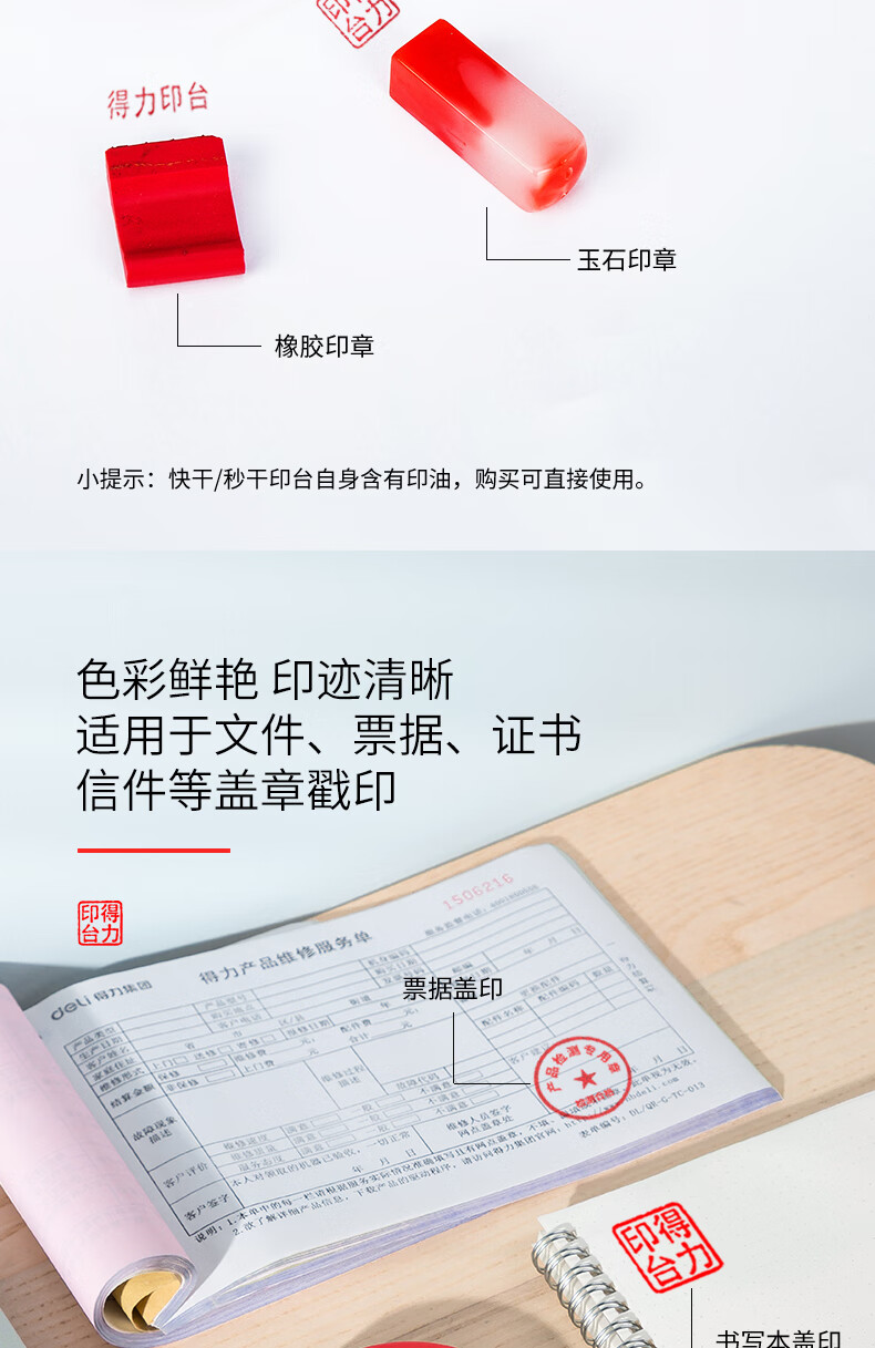 商品名稱:得力9863ES 快干印臺(tái) φ82mm圓形財(cái)務(wù)用品 紅色 單個(gè)裝