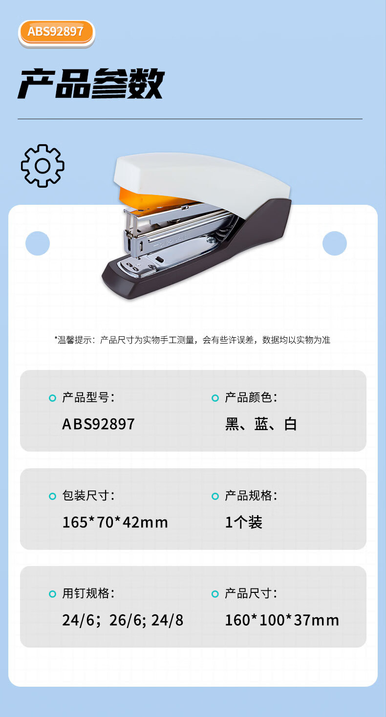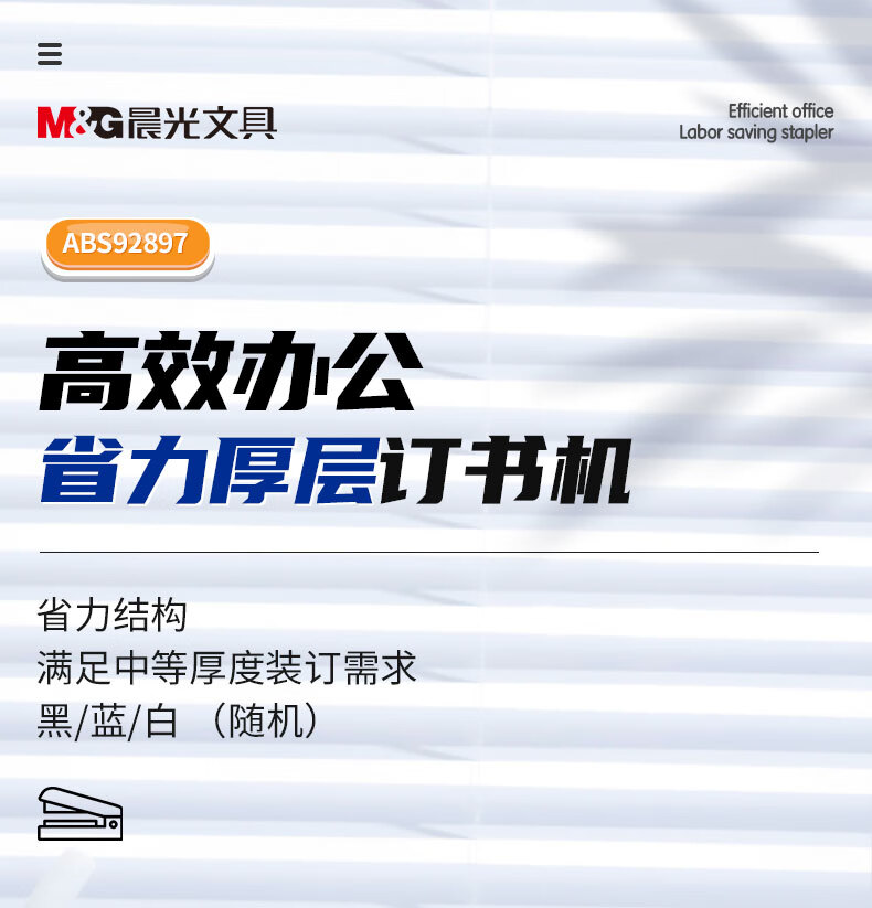 商品名稱:晨光ABS92897 12#厚層訂書機 商務省力訂書器 辦公用品 單個裝 顏色隨機