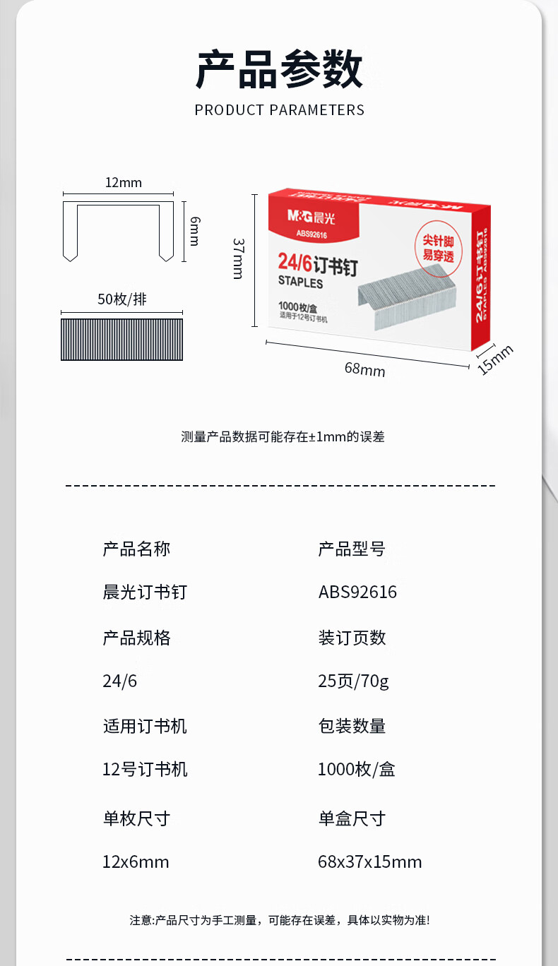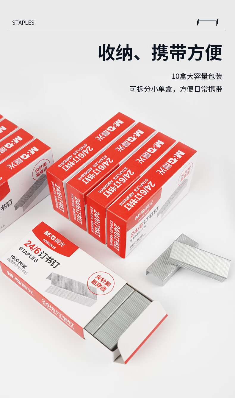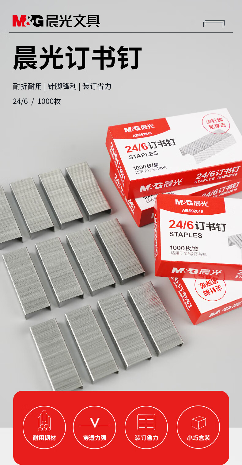 商品名稱:晨光ABS92616 訂書釘 12#高強(qiáng)度易穿透訂書針 辦公用品 1000枚/盒 單盒裝