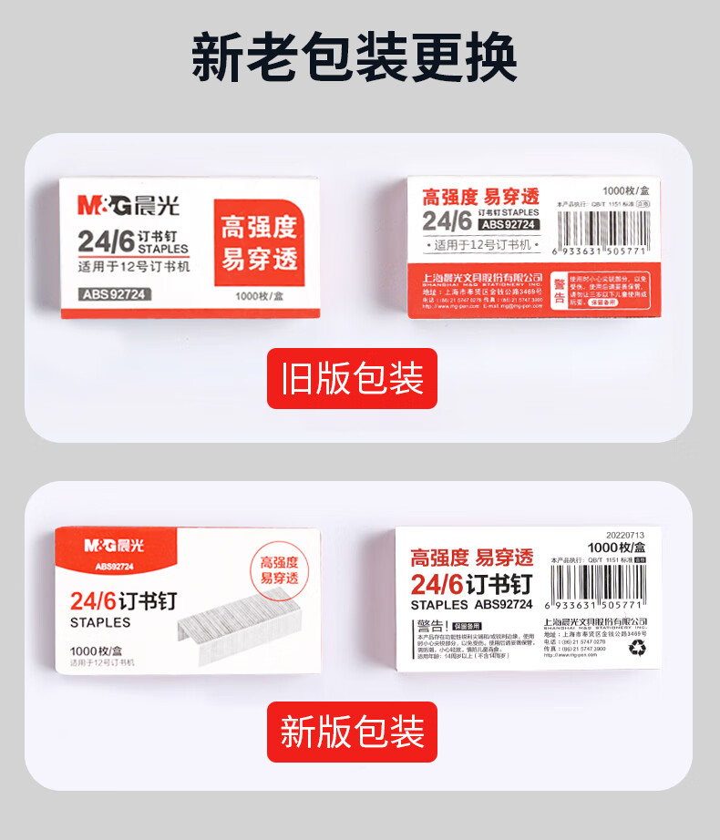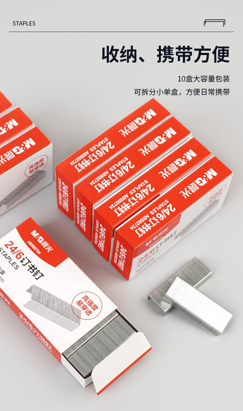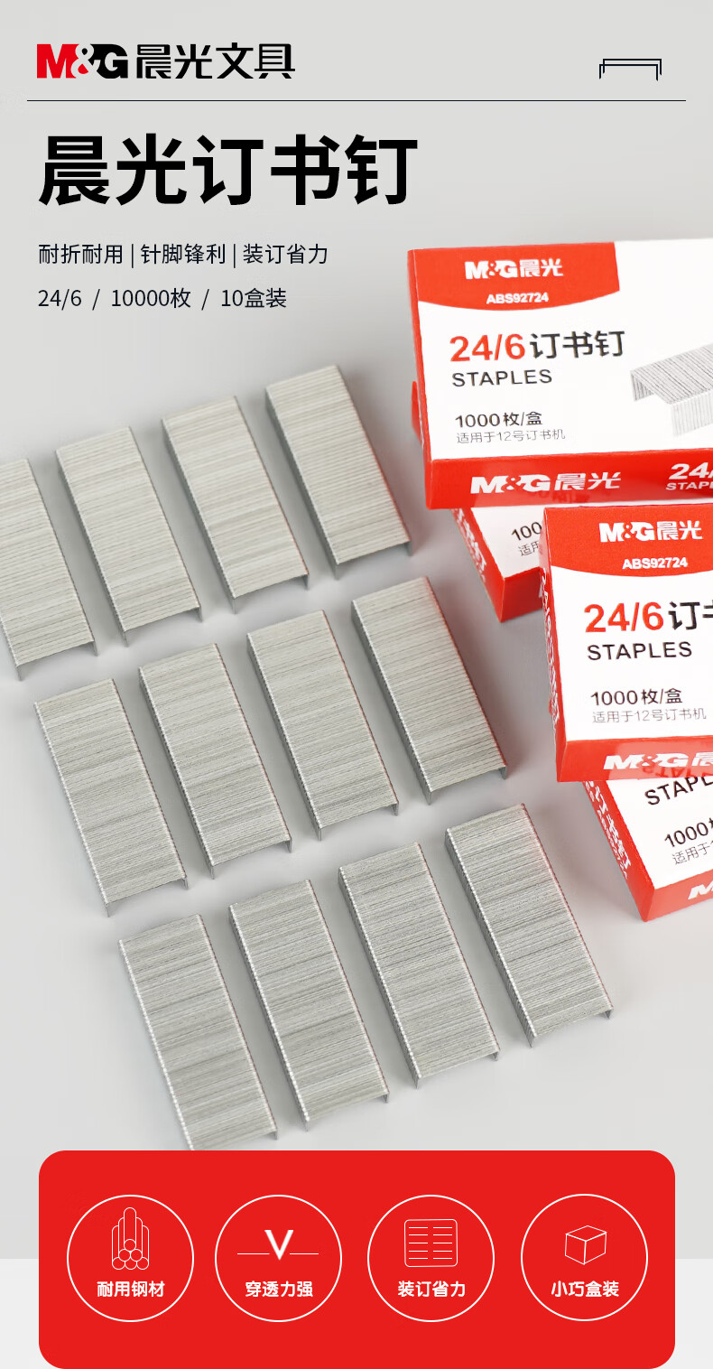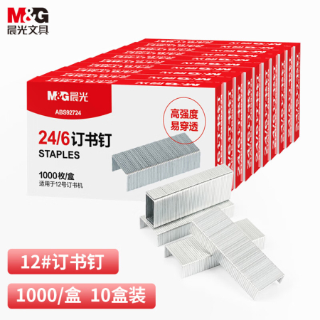 商品名稱:晨光ABS92724 訂書釘 12#高強(qiáng)度易穿透訂書針 辦公用品 1000枚/盒 10盒裝