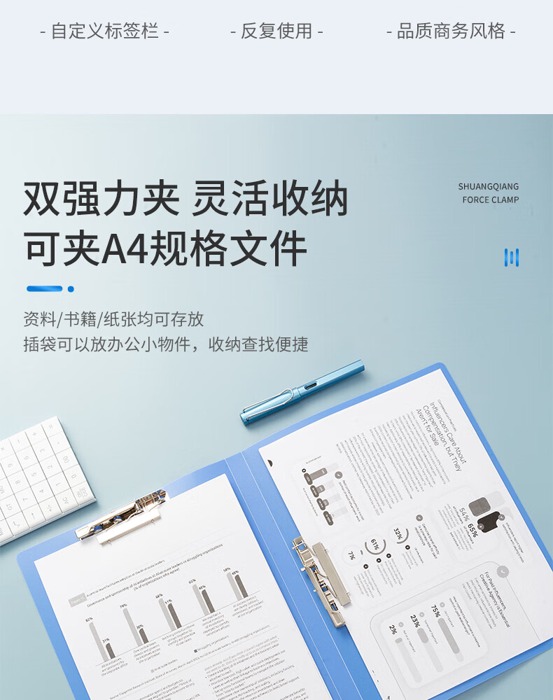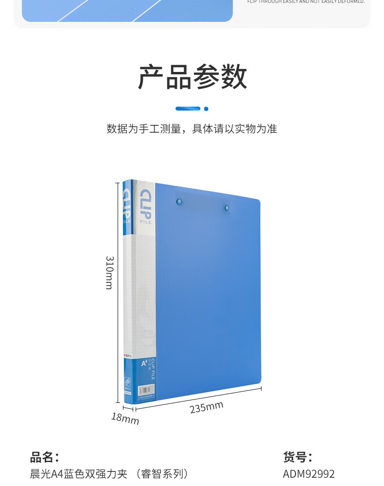 商品名稱(chēng):晨光ADM92992 文件夾 A4藍(lán)色雙強(qiáng)力夾 睿智系列辦公資料夾 單個(gè)裝