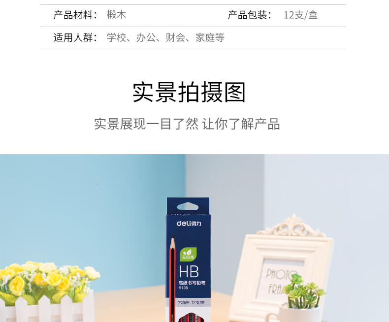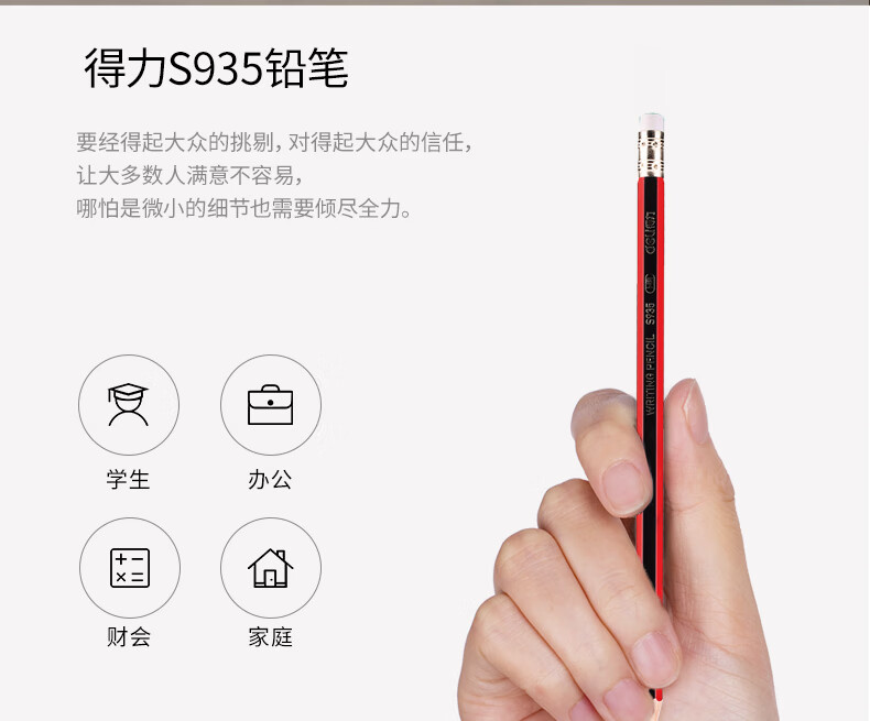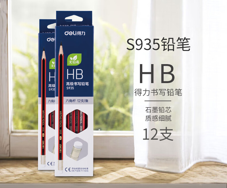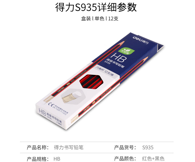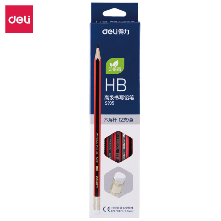 商品名稱:得力S935 HB鉛筆 高級(jí)鉛筆(紅色)(12支/盒)