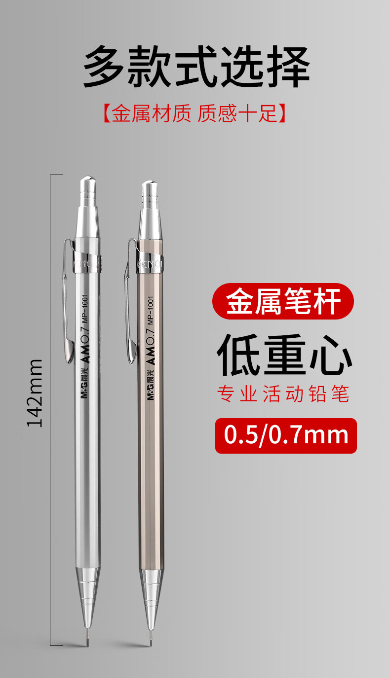 商品名稱:晨光MP1001 鐵桿自動鉛筆 0.7簡約經典金屬自動鉛筆不易斷芯黑 單支裝