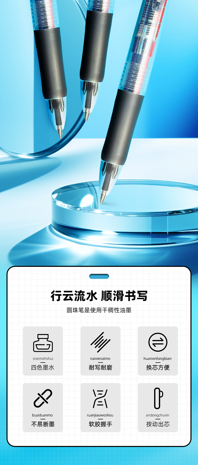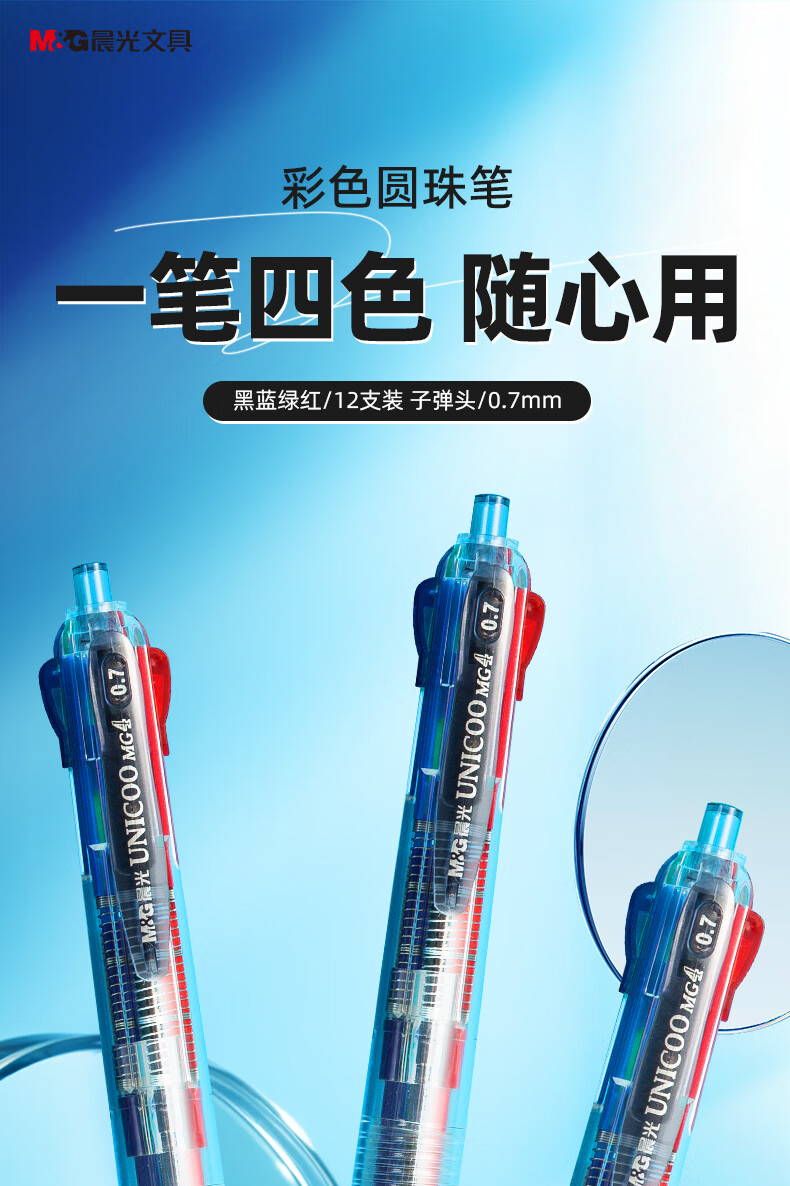 商品名稱:晨光BP8030 彩色按動圓珠筆 0.7mm子彈頭4色原子筆 透明筆桿中油筆 12支/盒