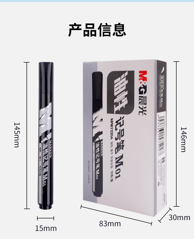 商品名稱:晨光APMY2204 黑色記號筆 M01單頭馬克筆物流筆標記大頭筆 10支/盒