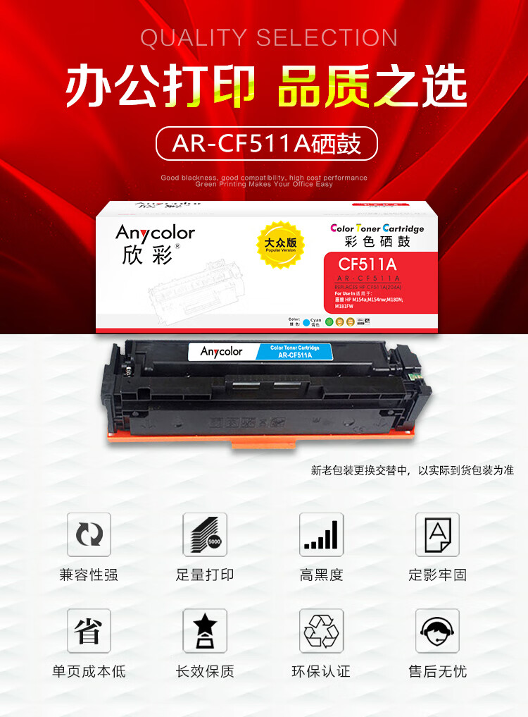 商品名稱:欣彩AR-CF511A藍(lán)色硒鼓 大眾版 適用惠普CF511A 204A M154a M154nw MFP M180 M180n M180nw M181