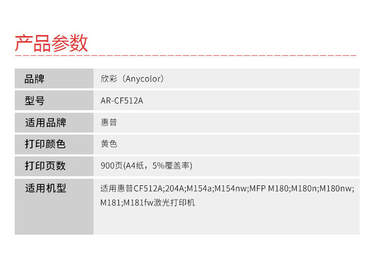 商品名稱:欣彩AR-CF512A黃色硒鼓 大眾版 適用惠普CF512A 204A M154a M154nw MFP M180 M180n M180nw M181激光打印機