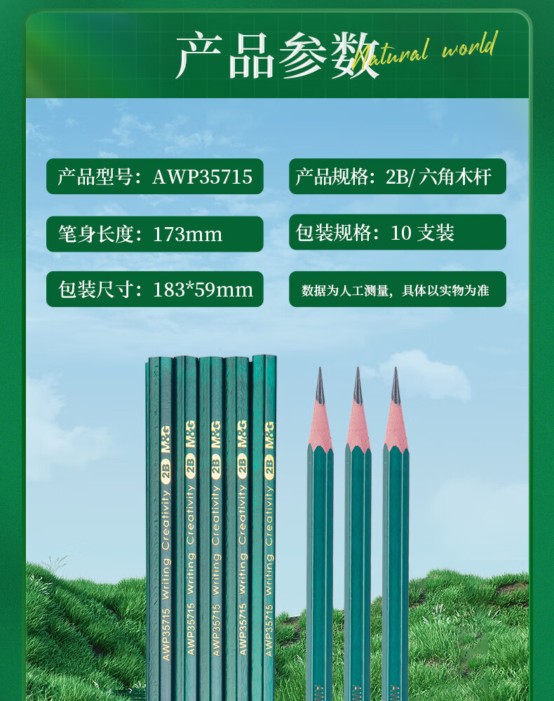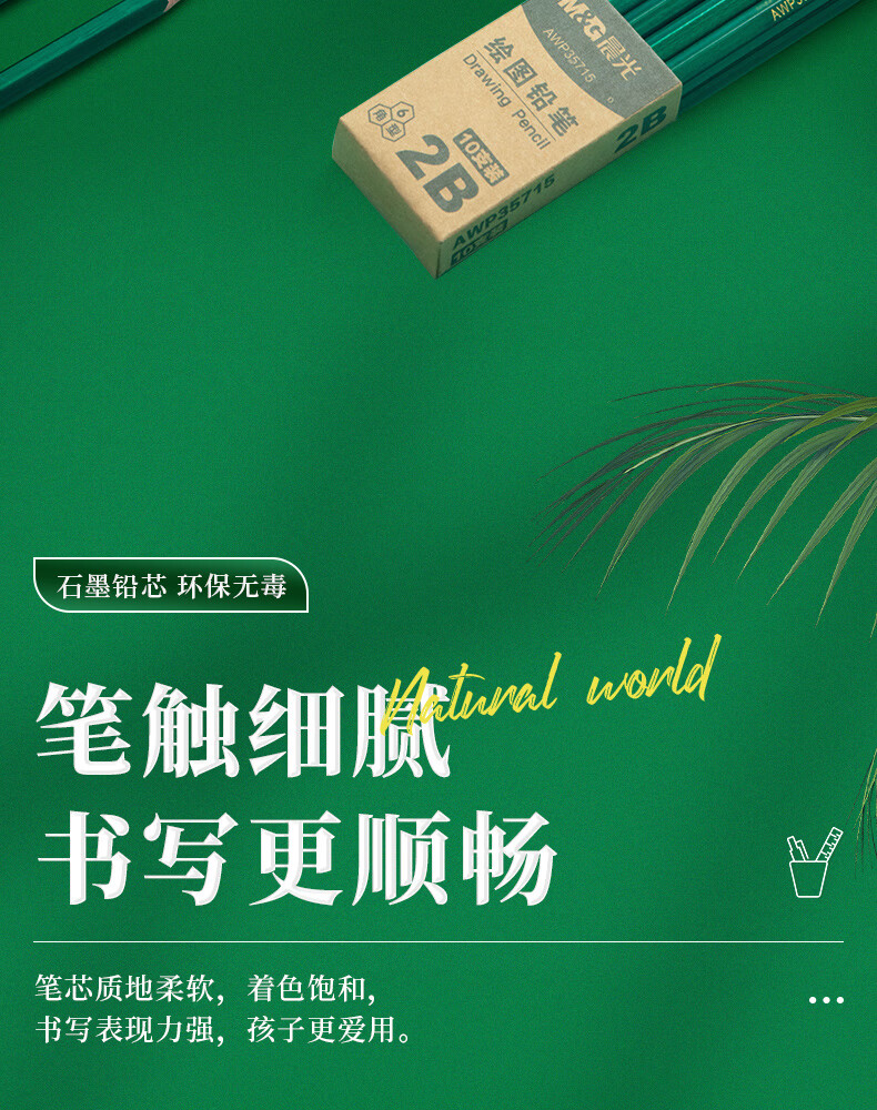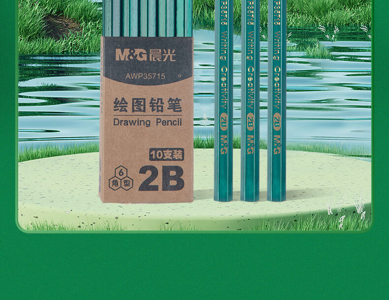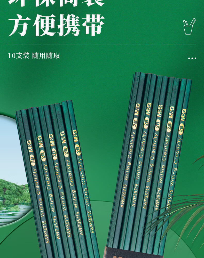 商品名稱:晨光AWP35715 2B鉛筆 經(jīng)典綠桿六角木桿鉛筆 10支/盒