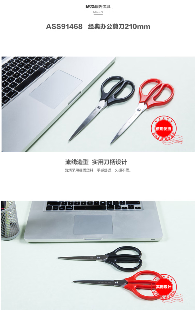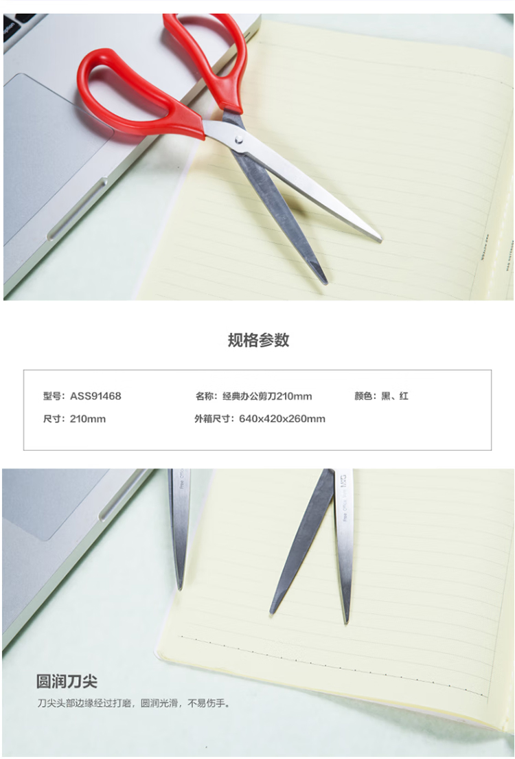 商品名稱(chēng):晨光ASS91468 辦公家用生活剪刀 210mm經(jīng)典手工剪紙 顏色隨機(jī) 單把裝