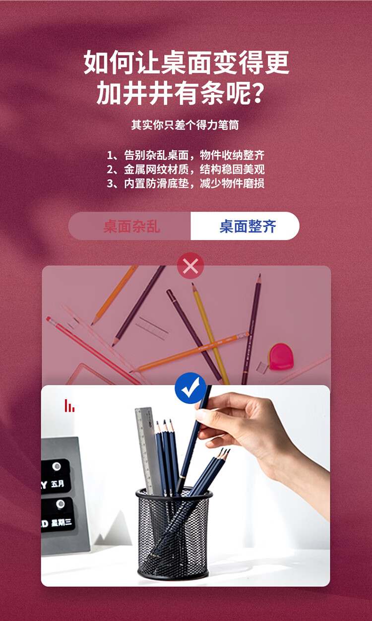 商品名稱:得力9172 金屬網(wǎng)紋圓形筆筒 簡約創(chuàng)意桌面收納盒 辦公用品 黑色 單個裝