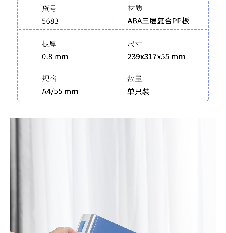 商品名稱:得力5683 檔案盒 55mmA4加厚塑料文件盒資料盒 單個裝