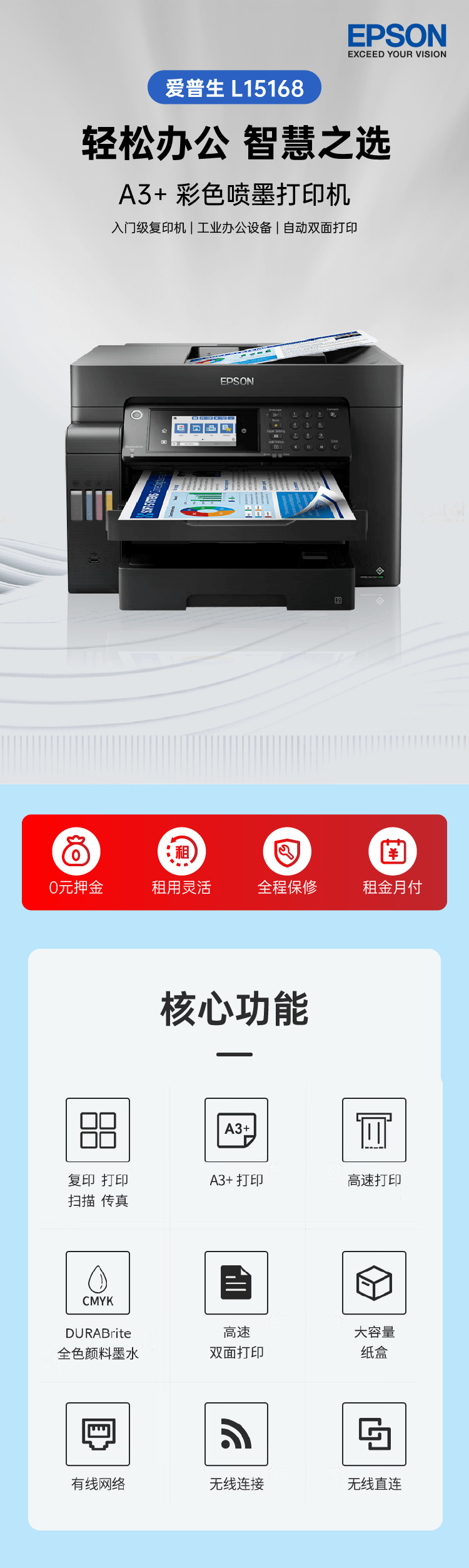 商品名稱:愛普生彩色噴墨復合機出租 茂名多功能一體機租賃 彩色/A3/中低速(月)
