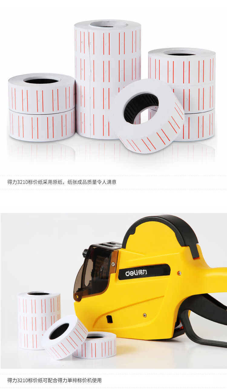 商品名稱:得力3210 單排標(biāo)價紙 21.5*12mm通用價格標(biāo)簽紙 10卷/筒
