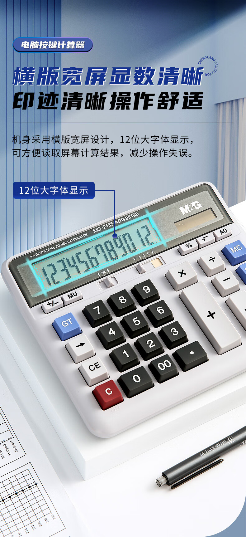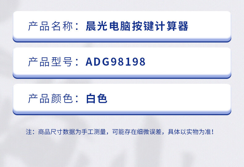 商品名稱:晨光ADG98198 計算器 12位大屏雙電源計算機 單個裝