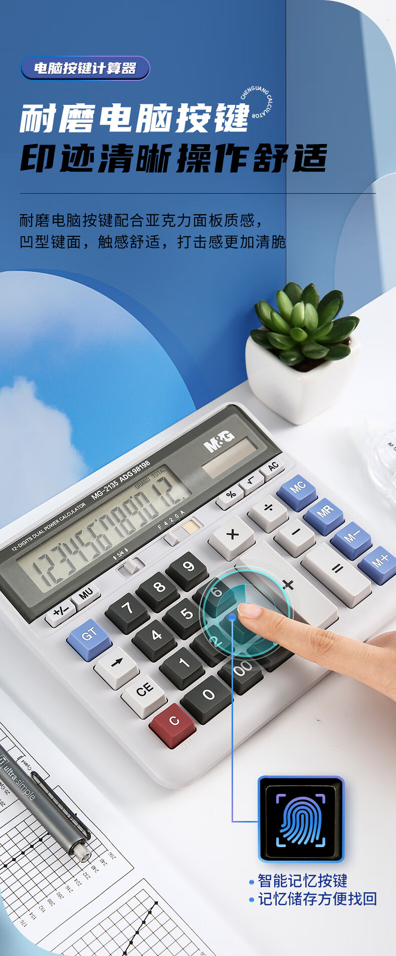 自營晨光ADG98198 計算器 12位大屏雙電源計算機 單個裝