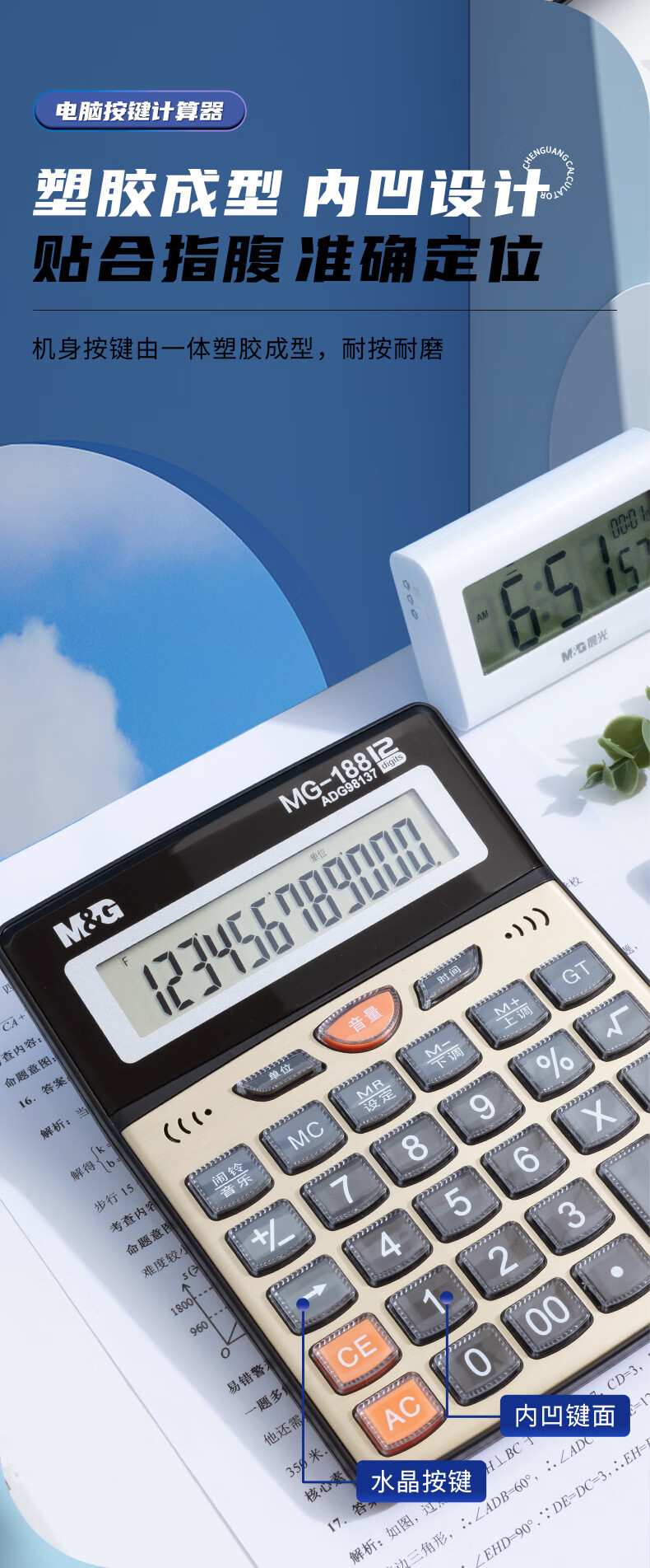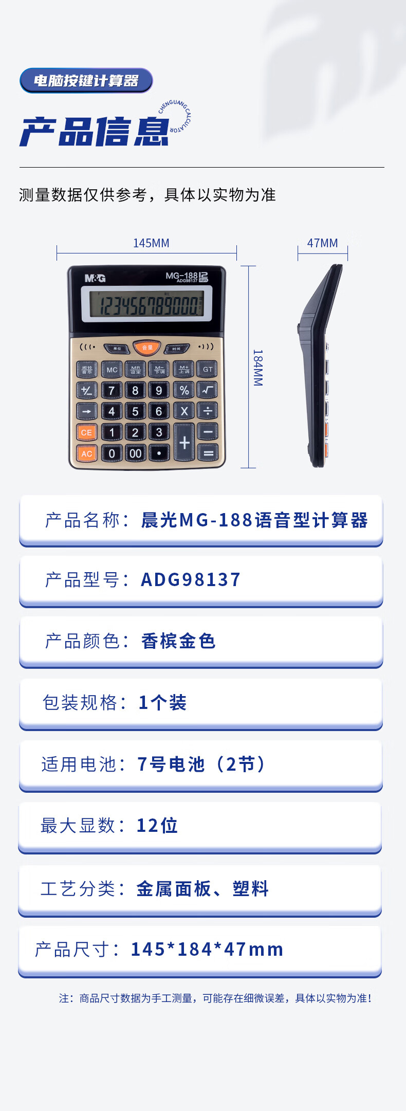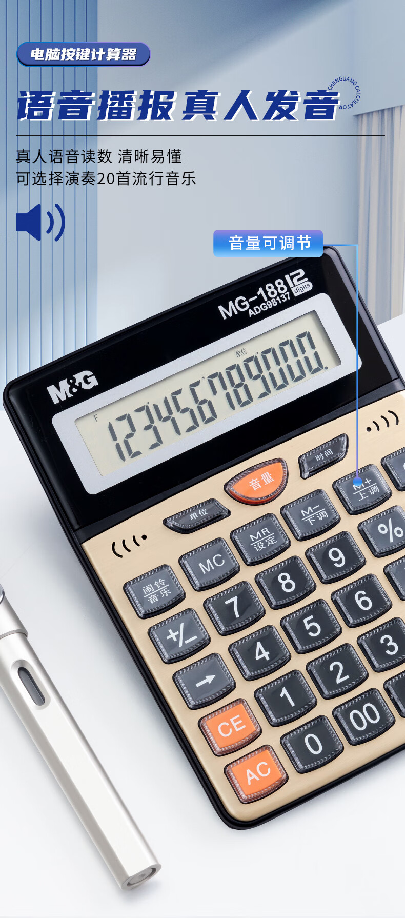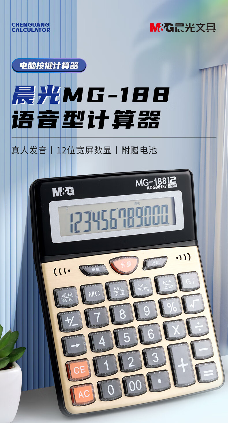 商品名稱:晨光ADG98137 金色金屬面板計算器 語音型桌面計算機(jī) 12位大屏幕 單個裝