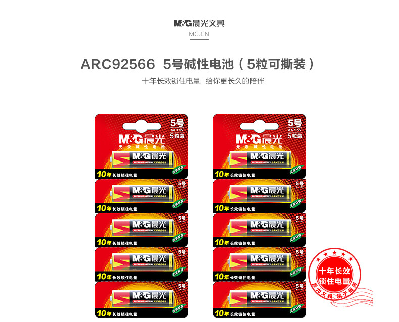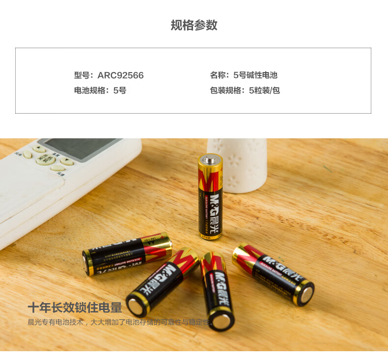 商品名稱:晨光ARC92566 5號堿性電池 可撕裝 5粒/卡