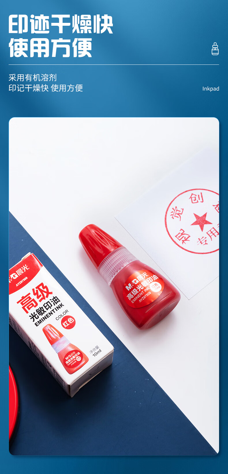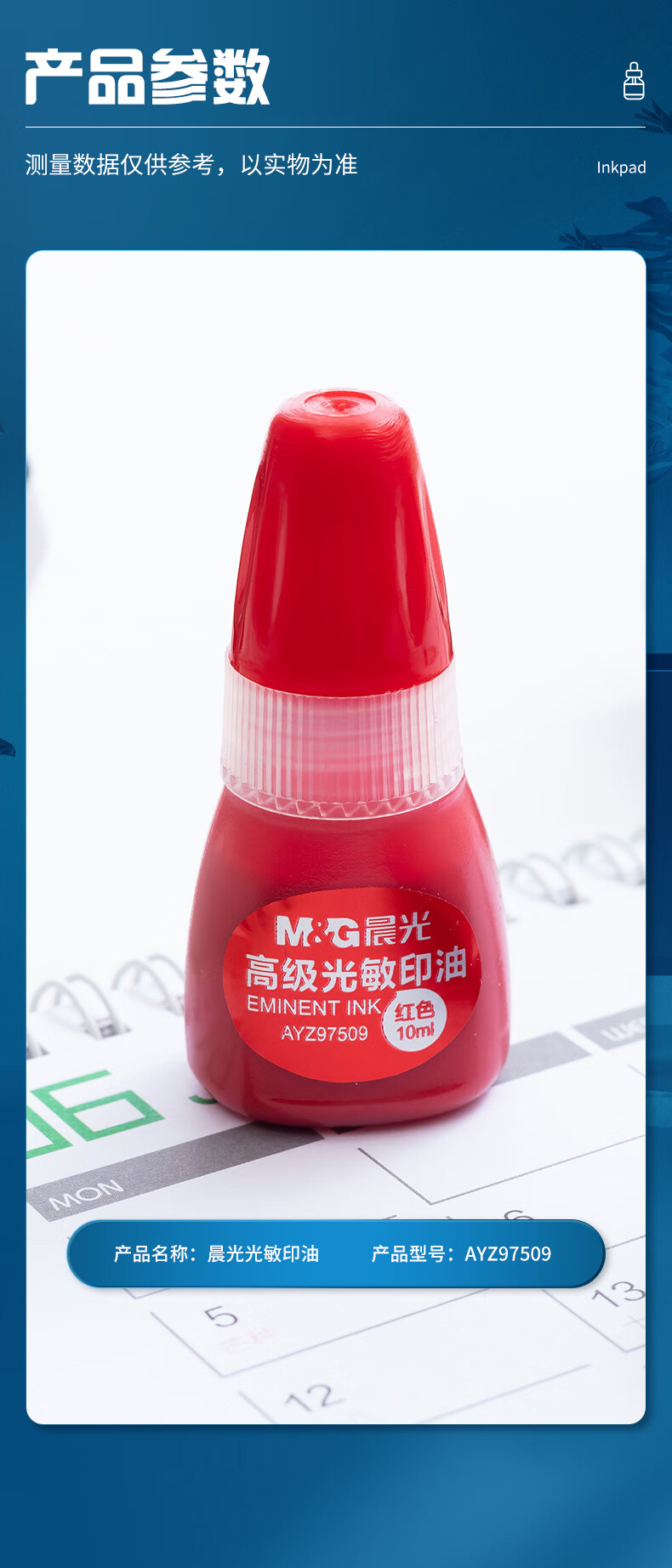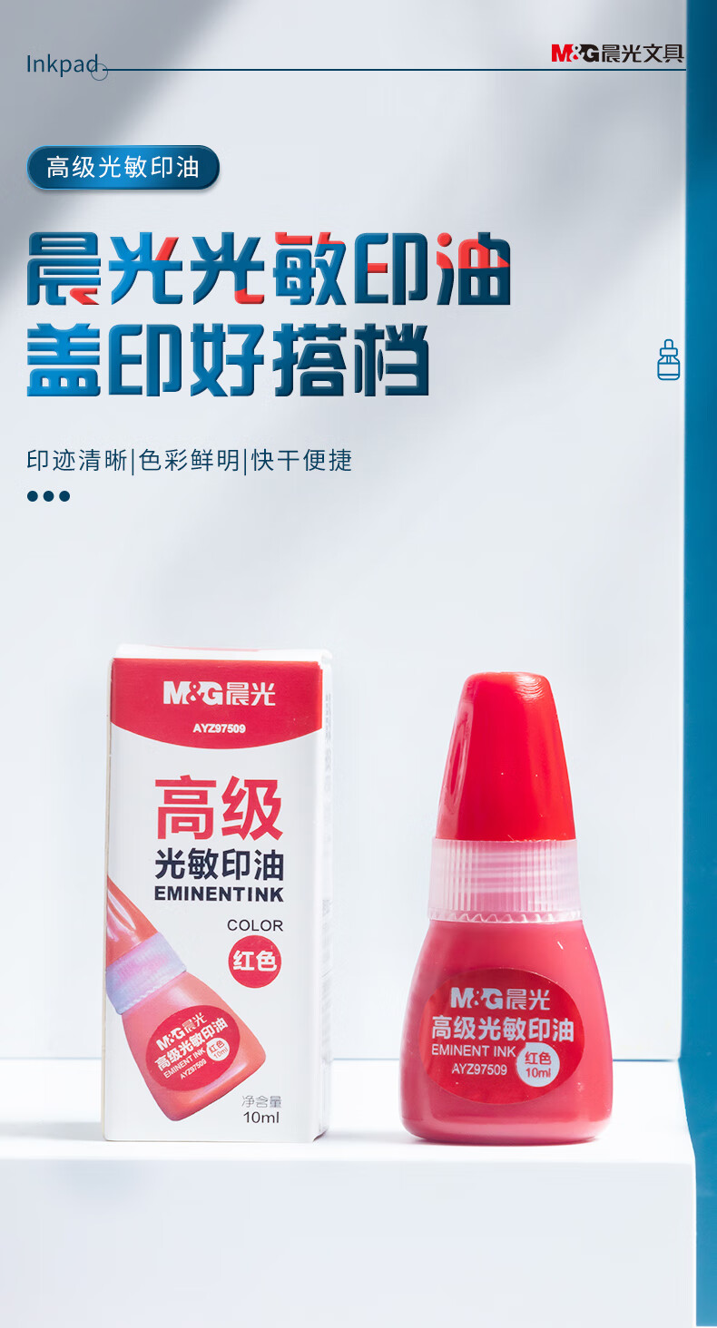 商品名稱:晨光AYZ97509 光敏印油 10ml財(cái)務(wù)紅色印章印臺(tái)印油 單瓶裝
