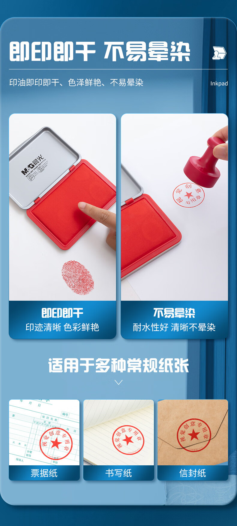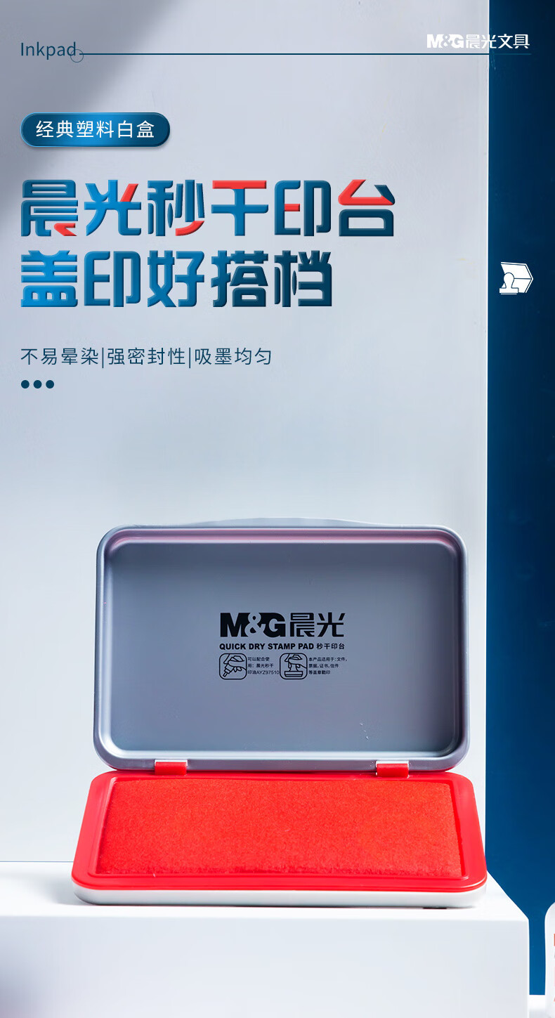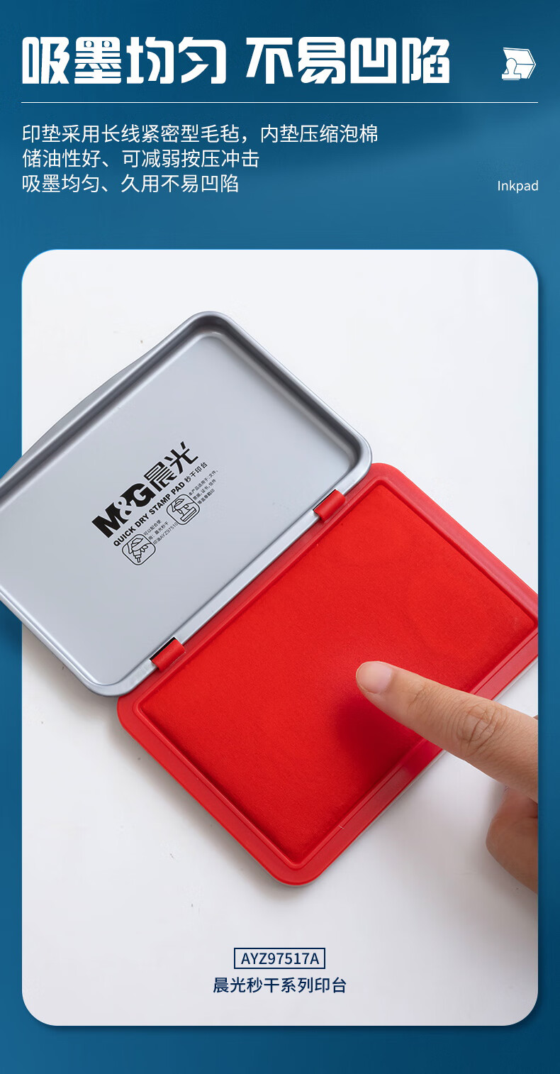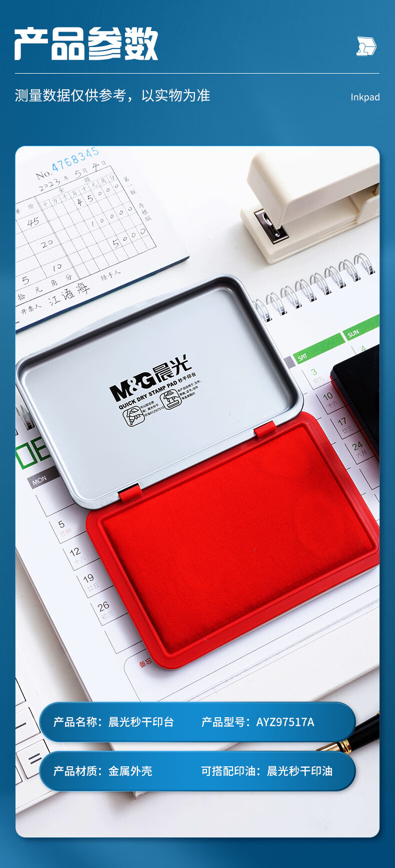 商品名稱:晨光120*80mm金屬方形中號秒干印臺印泥 紅色單個裝AYZ97517