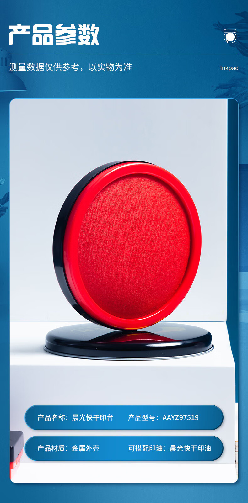 商品名稱:晨光φ85mm金屬圓蓋財(cái)務(wù)快干印臺(tái)印泥 紅色單個(gè)裝AYZ97519