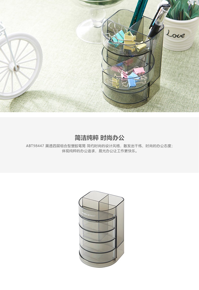 商品名稱:晨光透明四層時(shí)尚筆筒 多功能桌面收納盒 黑色 單個(gè)裝ABT98447