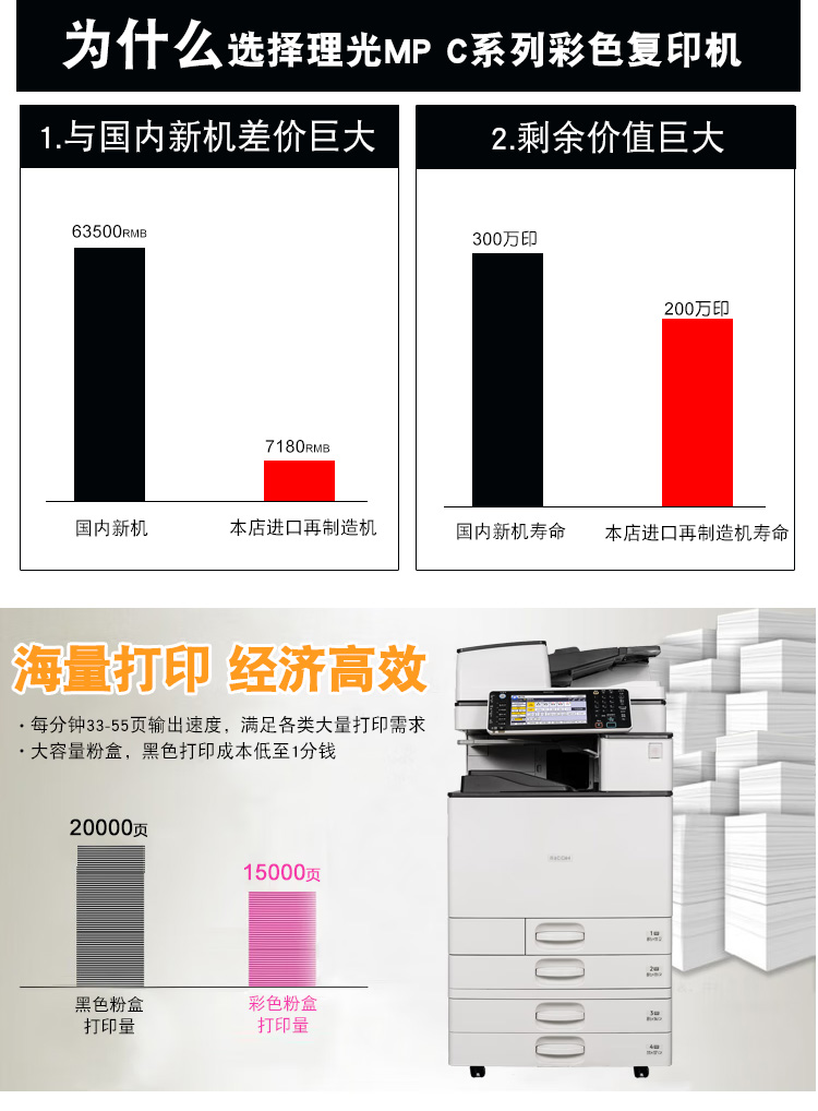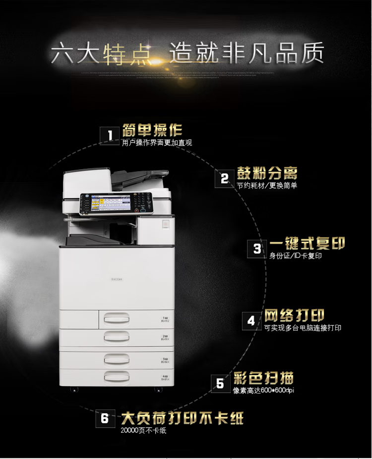 商品名稱:茂名湛江理光MPC6003彩色激光復印機租賃 A3大型一體機出租