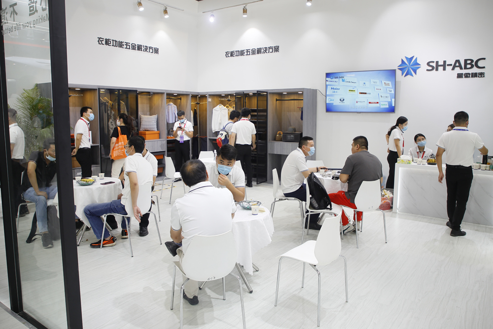 星徽展廳分為歐式家居五金解決方案、美式家居解決方案、衛(wèi)浴柜五金解決方案、衣柜功能五金解決方案、廚房功能五金解決方案以及拆裝連接件幾大區(qū)域,各區(qū)域根據(jù)產(chǎn)品分類進行布置,特色鮮明,主題突出,展區(qū)陳列設(shè)計簡潔,讓參觀客戶獲得真實的體驗效果。