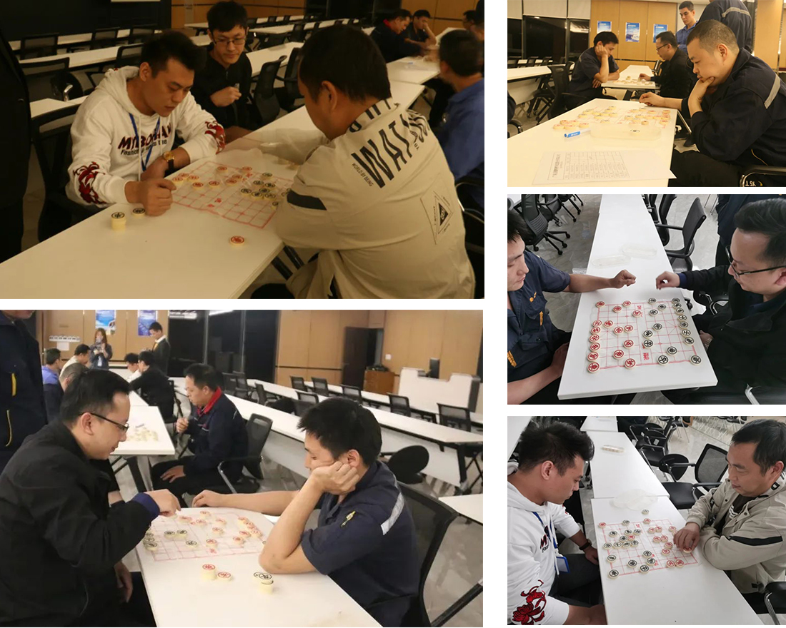 象棋比賽在集團(tuán)總部大樓六樓會議室進(jìn)行,現(xiàn)場氣氛緊張而又激烈。參賽隊(duì)員都凝神聚氣,仿佛所有力氣都付諸在了每一顆棋子上。雙方對弈激烈,你一步我一步僵持許久都難分勝負(fù)。