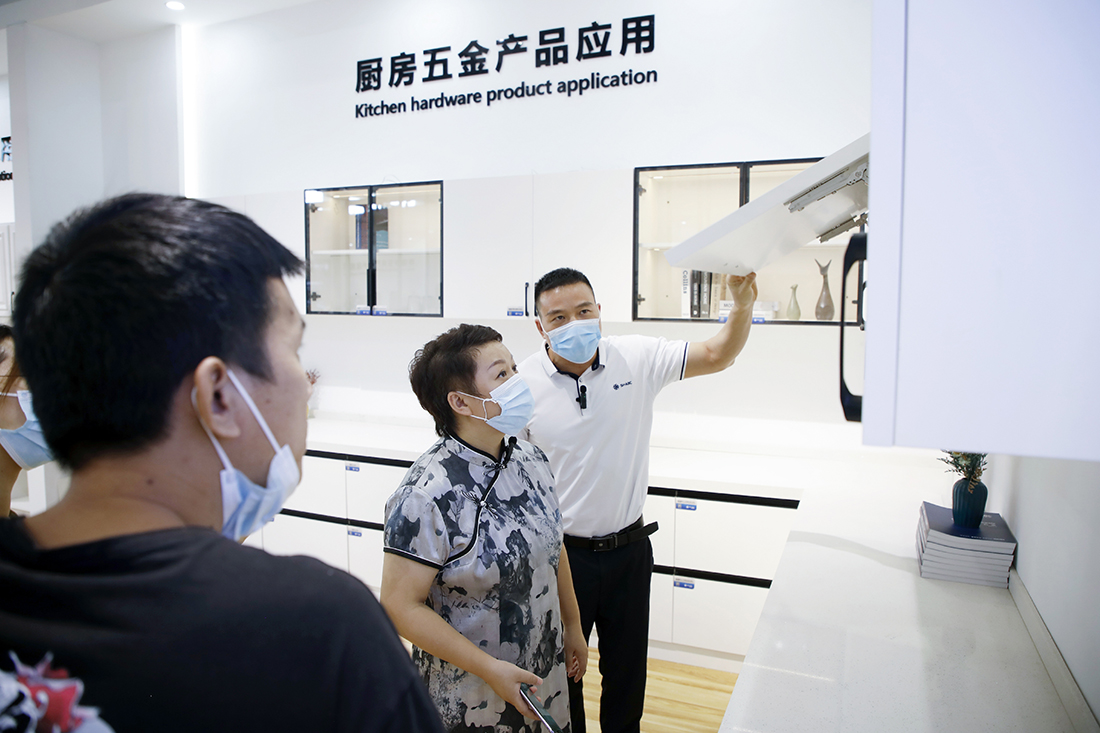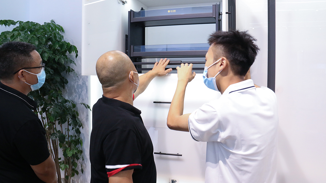 在廚房功能五金區(qū)域,全鋁高端拉籃系列選用上等鋁合金材質,防水耐臟,堅固耐刮,創(chuàng)意升級,靈動點綴黑晶鋼化玻璃,輕松解決廚房收納難題。